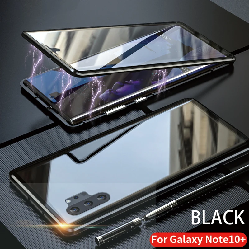 Для samsung Galaxy Note 10 Plus Pro Чехол переднее и заднее магнитное закаленное стекло двустороннее Стекло Алюминиевый металлический защитный чехол