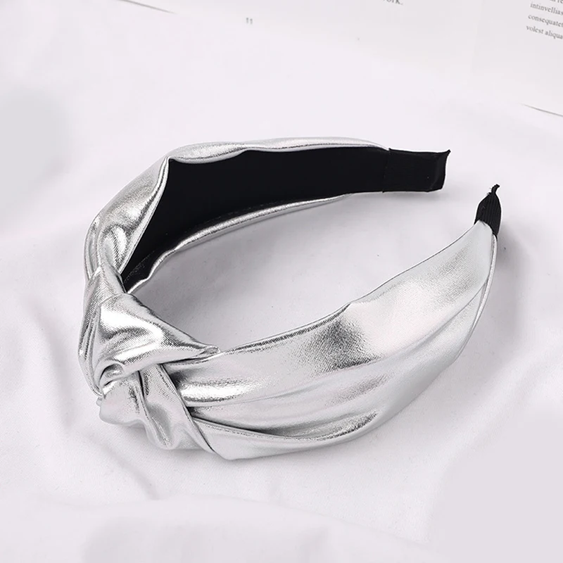 1 шт. яркий цвет искусственная кожа узел посередине широкая головная повязка сплошной цвет головная повязка