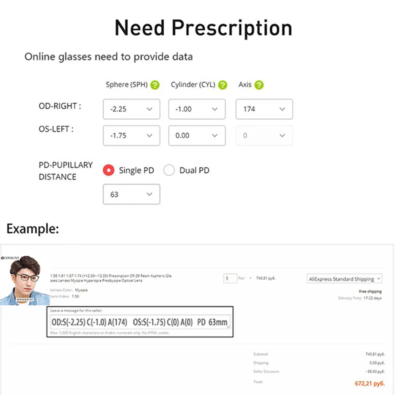 Пожалуйста, предложите нам ваш рецепт. Нам нужны ваши данные по рецепту для производства линз OD-R Sph xxx Cyl xxx Axis xxxx OS-L Sph xxx Cyl xxx Axis xxx PD-R: xxx мм PD-L: xxx мм Просим вас оставить нам сообщение.