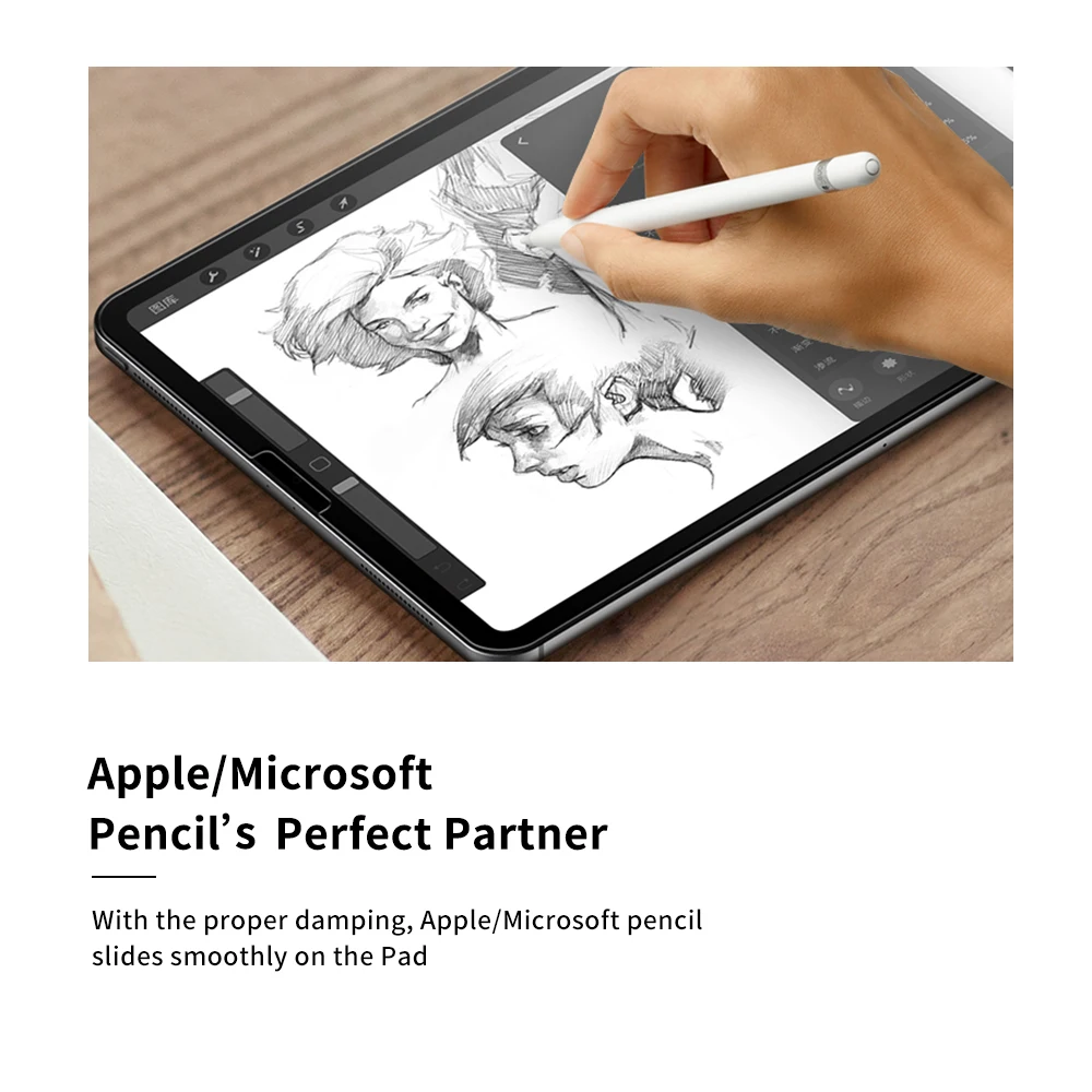 Особенности: Мне нравится писать на бумаге. Пленка из ПЭТ-бумаги усиливает трение карандаша, ощущается так же, как вы пишете на бумаге. Дайте вам Гладкий опыт, но не скользит. Совместим с стилусом хорошего качества. Рекомендуется купить стилус в нашем магазине, чтобы сделать пленку лучше. Устойчивость к царапинам и отпечаткам пальцев. Разработан с твердостью 3H и технологией АГ матового на поверхности, пусть протектор экрана iPad эффективно отделяет от царапин, масла, отпечатков пальцев и других пятен от стекла. Легко чистить. Этот протектор экрана является ПЭТ-пленкой, она в основном используется для рисования, письма или эскизов. Он не имеет сильной защиты экрана, потому что это не протектор экрана из закаленного стекла. Анти-блики. Изготовлен из матового материала из Японии и с использованием специальной матовой технологии, без бликов экрана, даже яркий солнечный светильник, не ослепляющий, легко читаемый на открытом воздухе или под светильник. Преимущества: 1. Это также нормально, даже если он протестирован 5000 раз карандашом. 2. Изготовлен из матового материала из Японии и использует специальную матовую технологию, чтобы гарантировать, что планшет будет носить и рвать в течение 6 месяцев. Параметры: Яркость: 91% Туман уровень: 13.5%