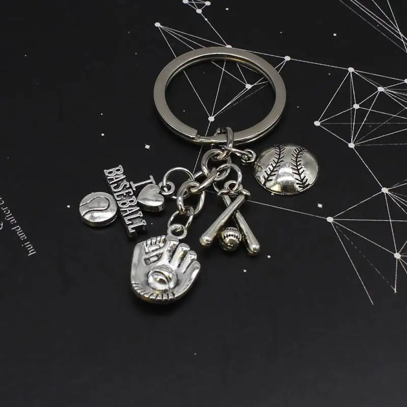 1 Античный Серебристый Брелок для ключей, я люблю футбол/Бейсбол/брелок, баскетбольный мяч, брелок для обуви, автомобильный брелок, аксессуары, ювелирные изделия черлидера