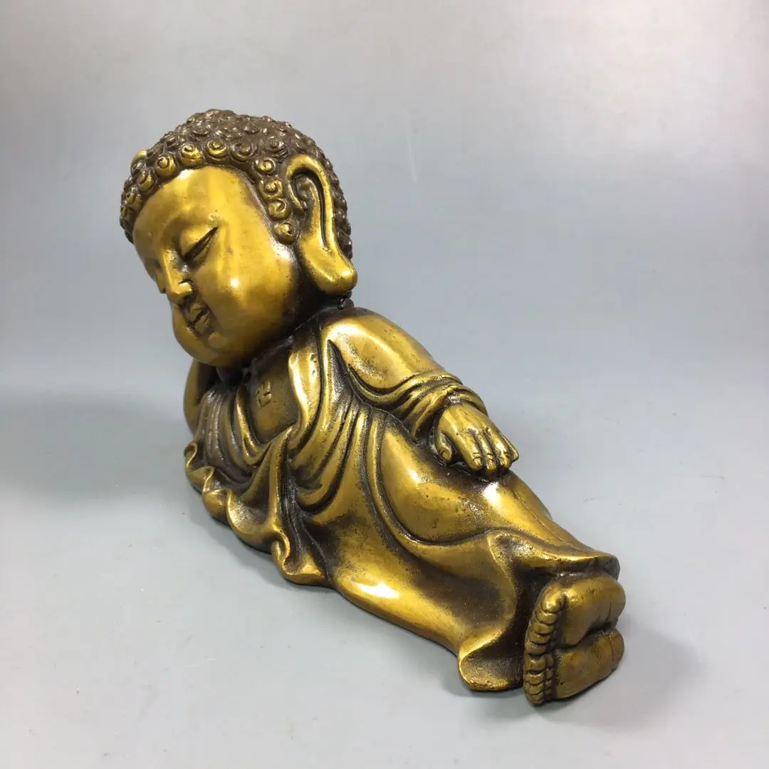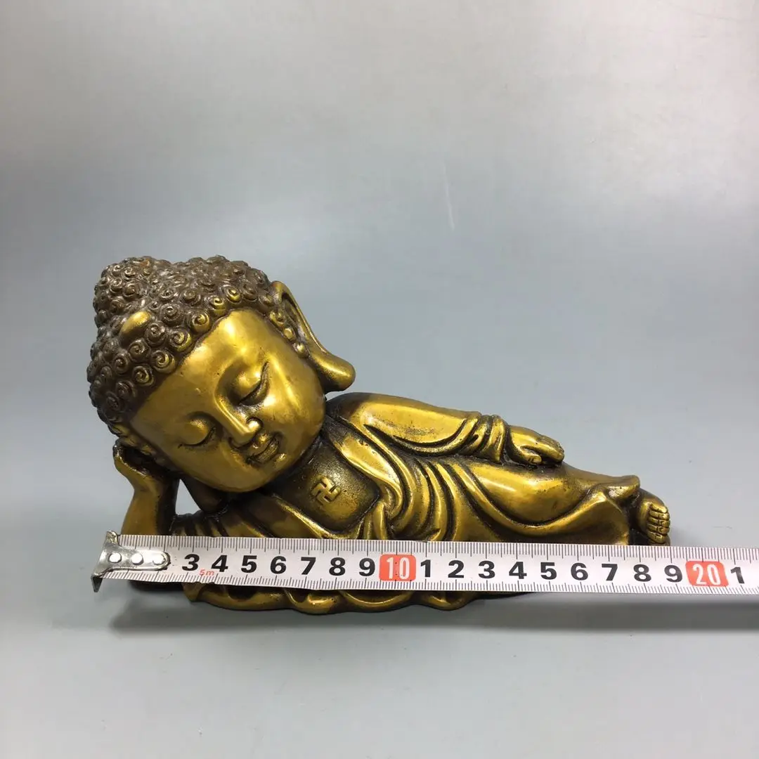 Китайская старая медная коллекция Чистый медный спальный Будда