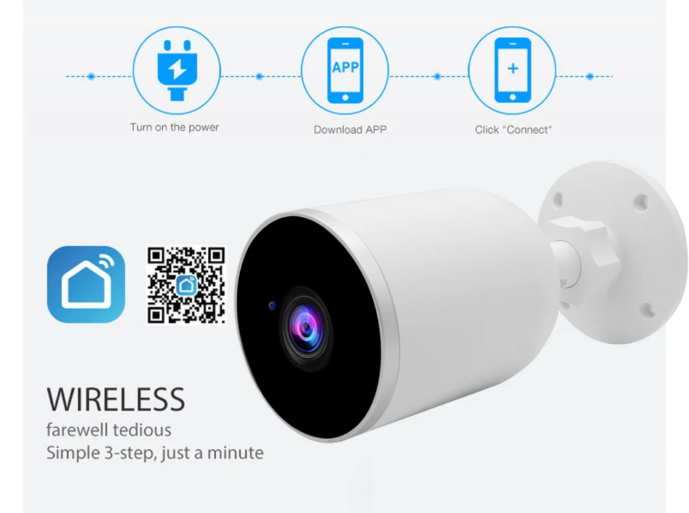 WiFi мини Внутренняя/наружная ip-камера 2,0 мегапикселей CMOS сенсор, H.264, 1080P. Встроенный слот для tf-карты, макс. 64 Гб. Встроенный ИК-вырез, чтобы увидеть реальный цвет изображения. Бесплатный P2P сервер; Простая настройка сканирования qr-кода. Частота кадров: 30 кадров в секунду для 1920x1080. Ночное видение: 2 ИК светодиодный свет (диапазон: 5-10 м). Поддержка беспроводной сети (Wi-Fi/802,11/b/g/n ). Бесплатное приложение: Tuyasmart или Smart Life. Системы поддержки: Android и IOS. Поддержка сигнала тревоги до 64G с локальной памятью. Workes с Alexa Echo и google home (дополнительно, необходимо добавить exral плату).