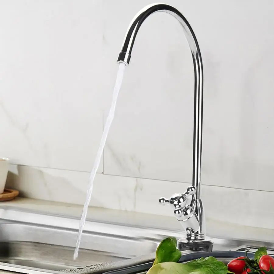 This is a high quality faucet tap for kitchen. Made of high quality stainless steel, and it is durable. Elegant color and stylish make it a great decor for your kitchen. 360 degree rotation goose neck faucet. Fits all under counter water filter systems.