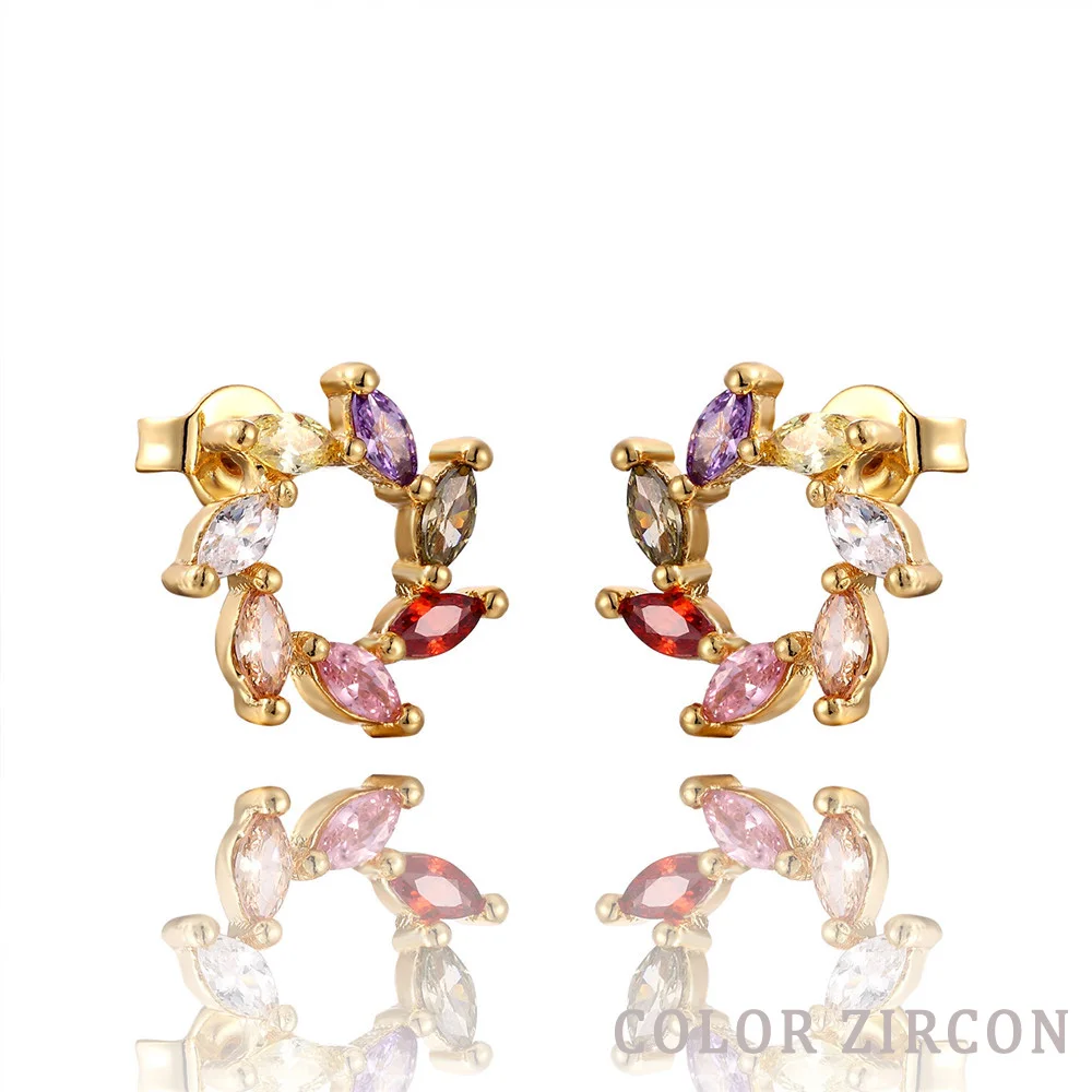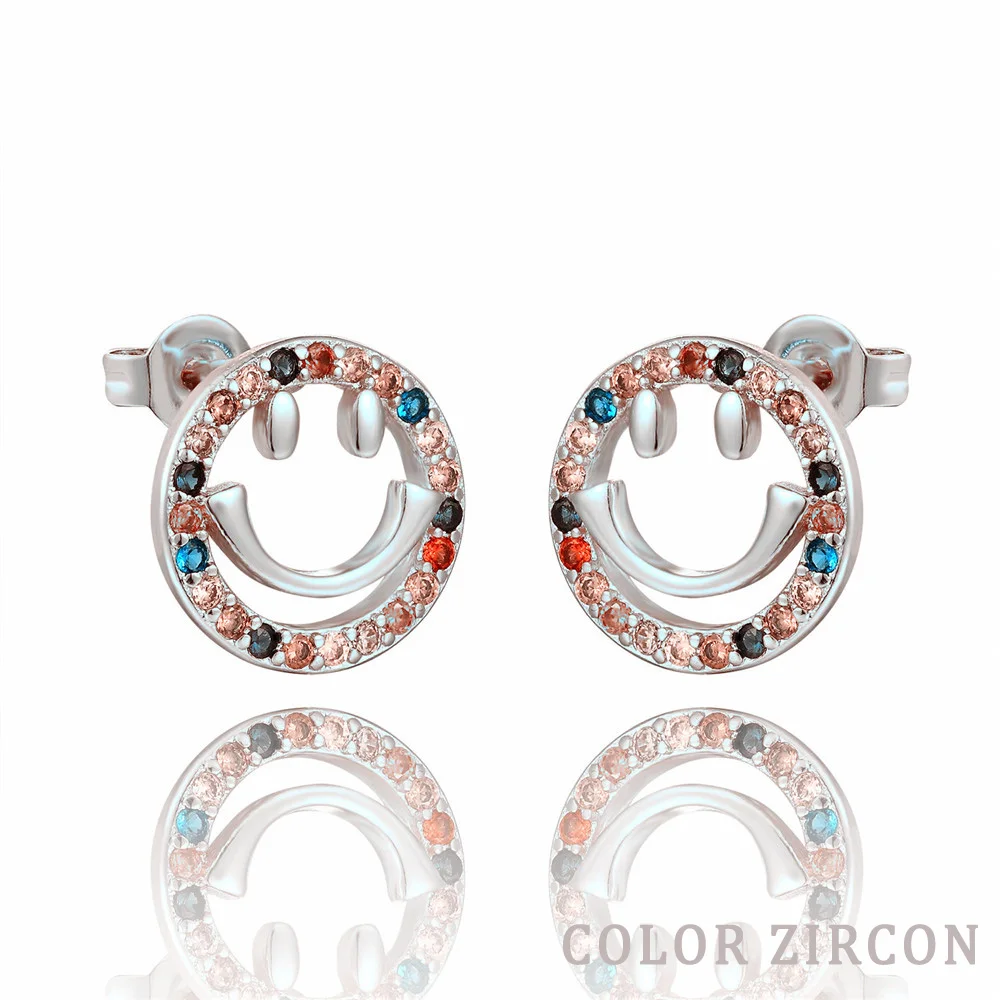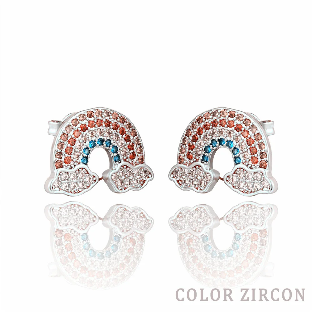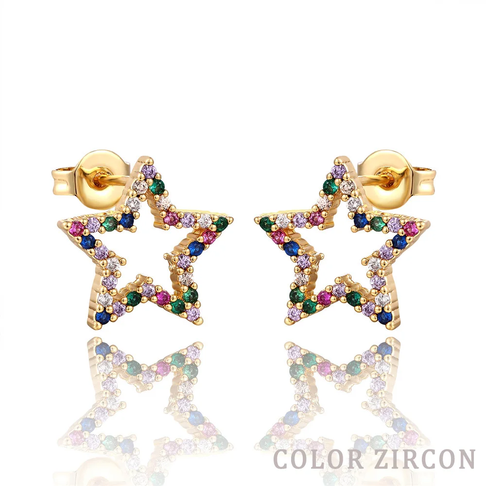 Гламурные серьги «Радуга», женские серьги с фианитом, ювелирные изделия из золота и серебра с фианитами и звездами, серьги в виде сердца и улыбки, Женские Ювелирные изделия в подарок