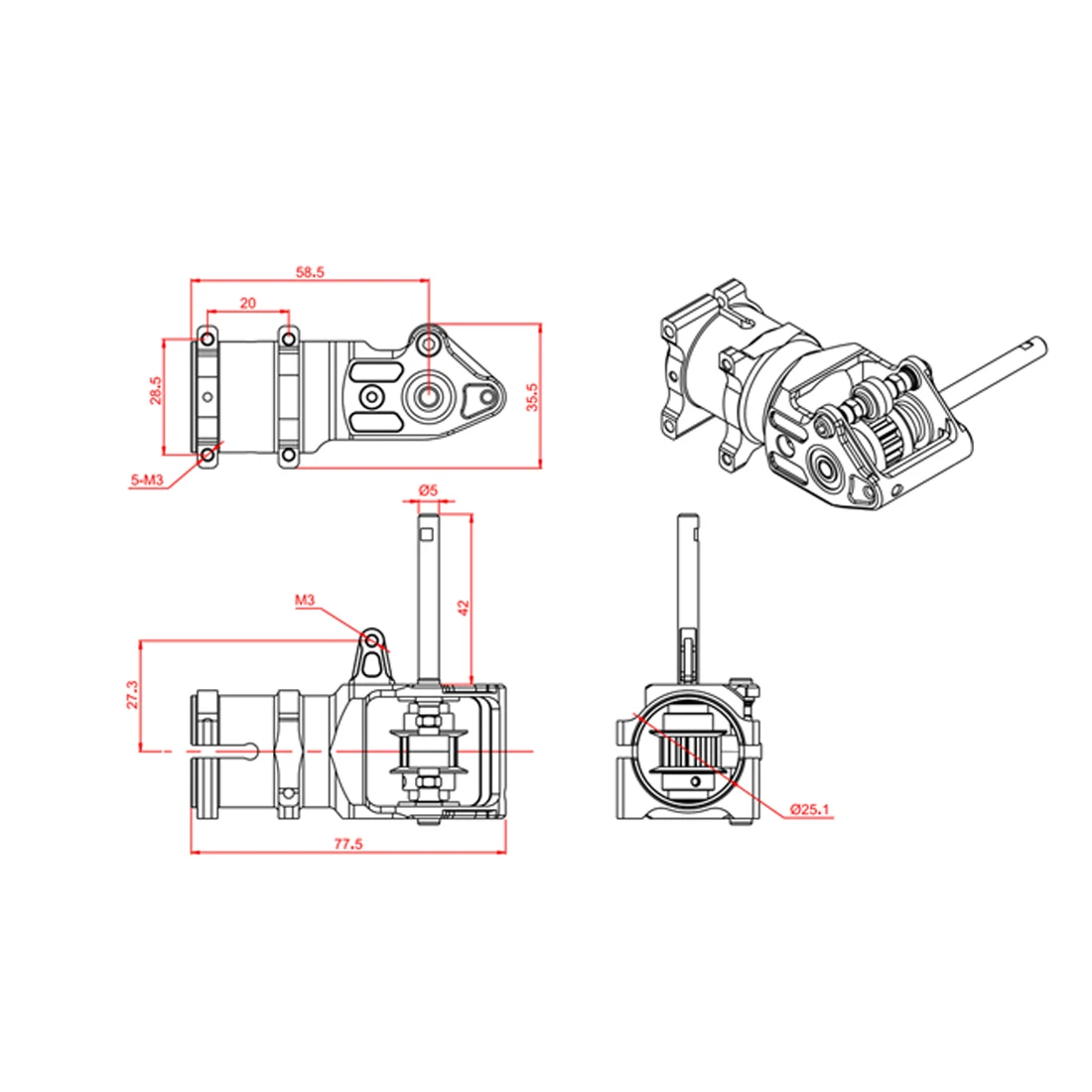 This product adopts 6061T6 aluminum alloy full CNC integrated molding processing, suitable for LOGO 550/600 models. The advantages of the integrated metal tail gear box group are that the box body is sturdy and the tail shaft bearing position is highly concentric, which can effectively reduce tail vibration. Double bearing anti-slip design, comes with anti-static function.