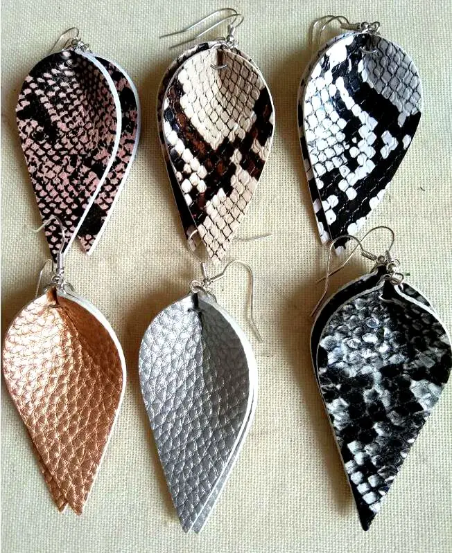 Серьги-подвески из искусственной кожи с обеих сторон