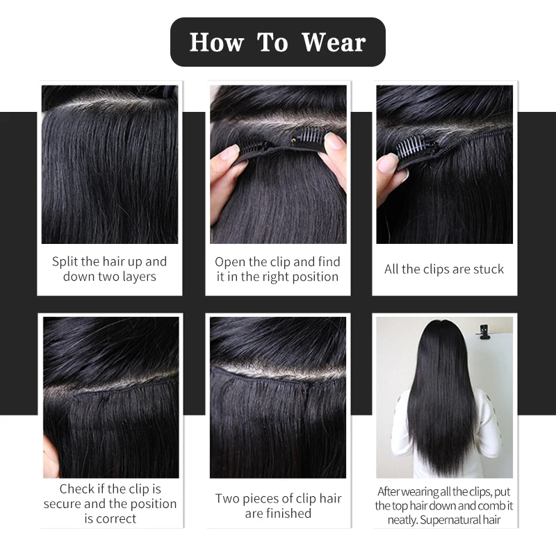 Спецификация: 7 шт./компл., 16 зажимов прилагаются 100 г 1-8 дюймов/20 см Длинные части с 4 зажимами каждый кусок Две-6 дюймов/15 см Длинные части с 3 зажимами каждый кусок 1-4 дюйма/10 см Длинные части с 2 зажимами каждый кусок Два-2 дюйма/5 см Длинные части с 1 зажимом каждый кусок Качество: * 100% настоящие человеческие волосы на заколках, натуральные человеческие волосы на заколках * Шелковистые прямые волосы remy для наращивания. * Может быть кудрявым, выпрямленным утюгом. * Можно окрашивать только в более темный цвет!
