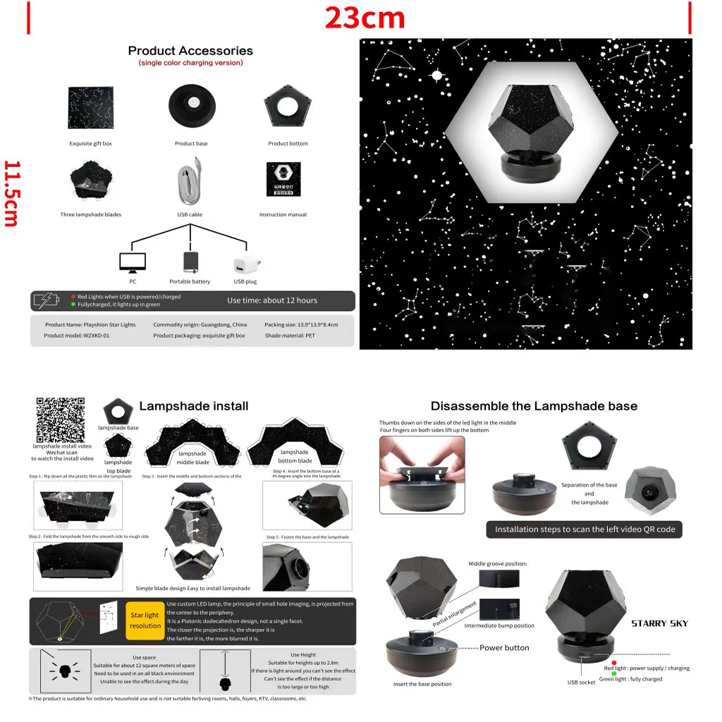 Plug-in shade design - Realistic starry sky on the ceiling or wall, creating a pleasant and relaxing bedtime experience for children, allowing children to sleep comfortably and comfortably, and for adults to enjoy relaxation and calm.