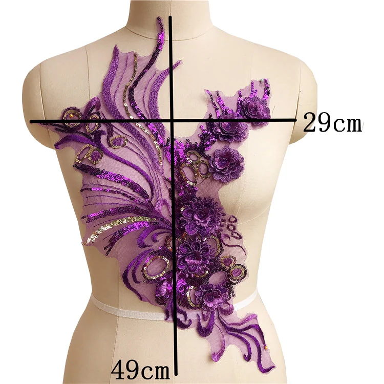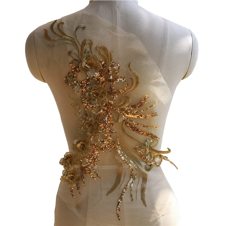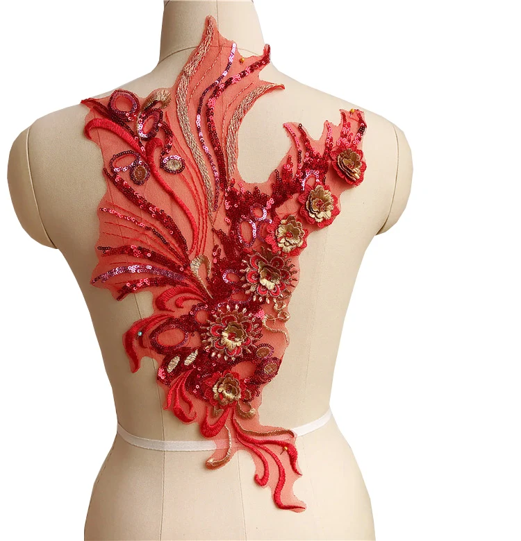 1 шт. красный/Золотой/фиолетовый 5 цветов 3D Цветочные вышитые аппликации из кружева с пайетками для вечернего платья или выпускного вечера