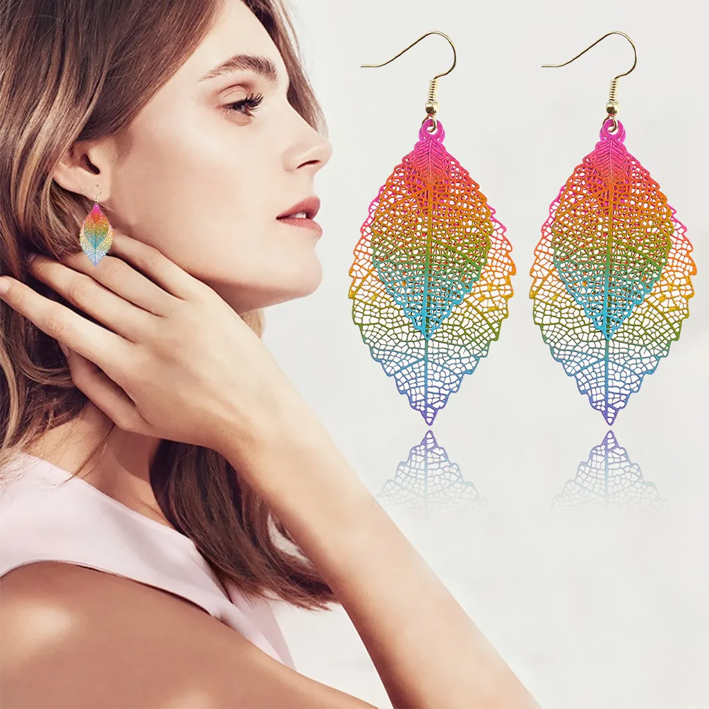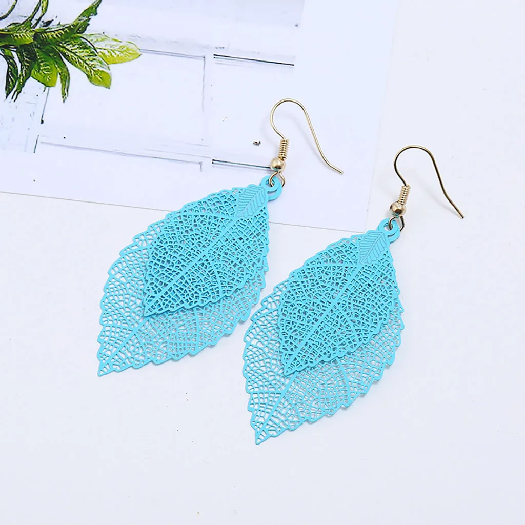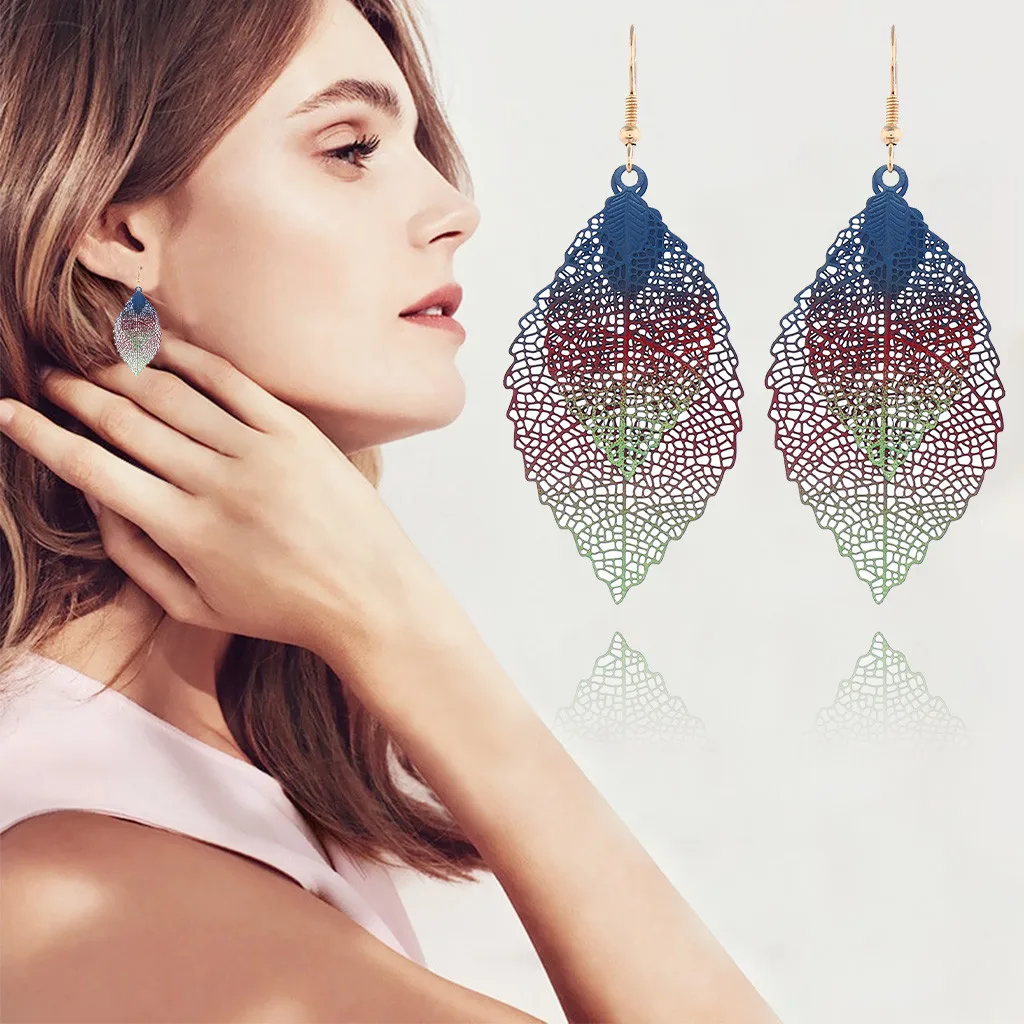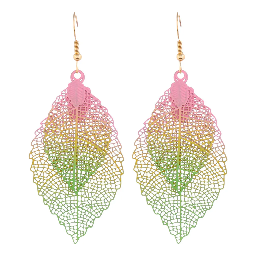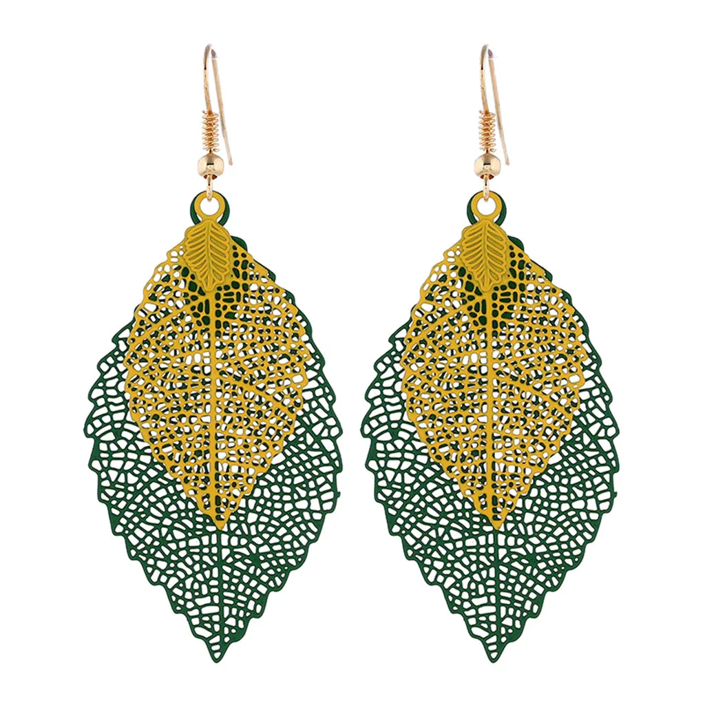 Богемные полые листья двухслойные Разноцветные серьги женские аксессуары