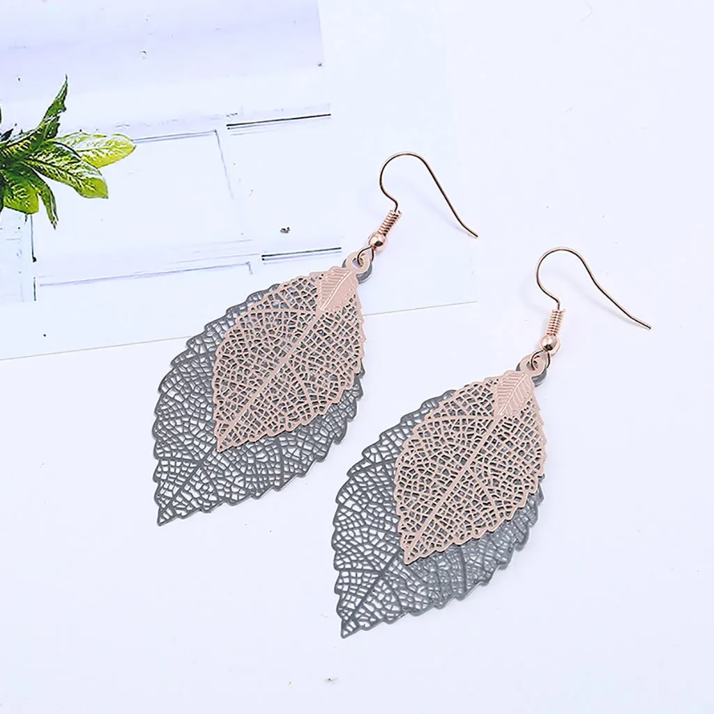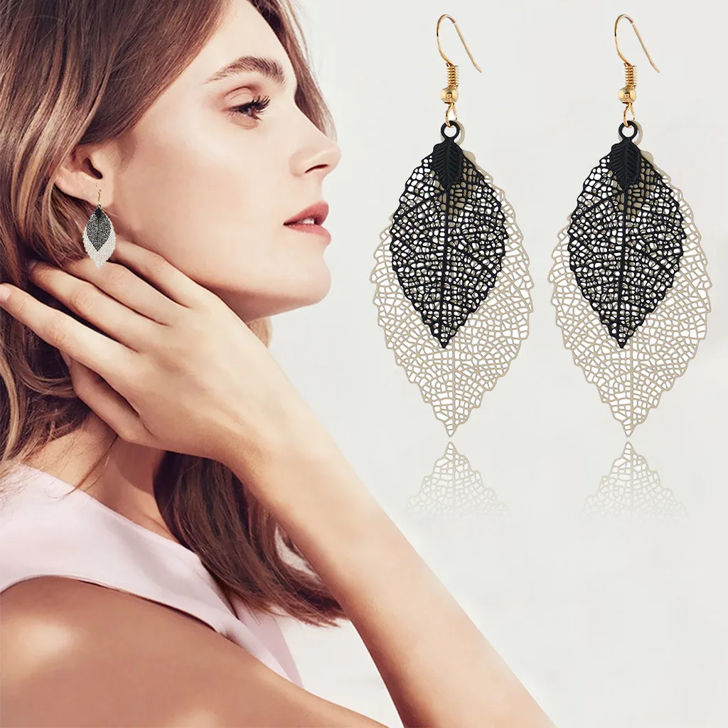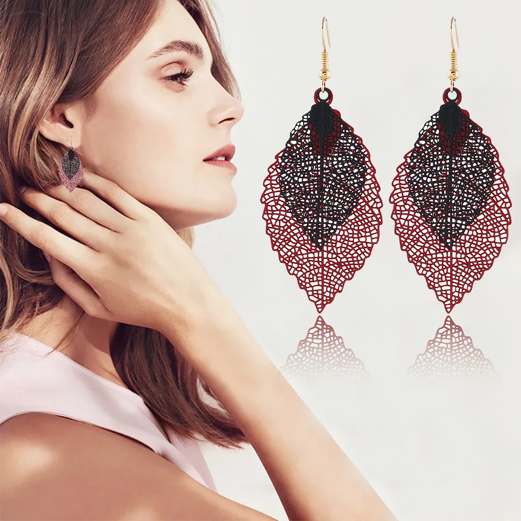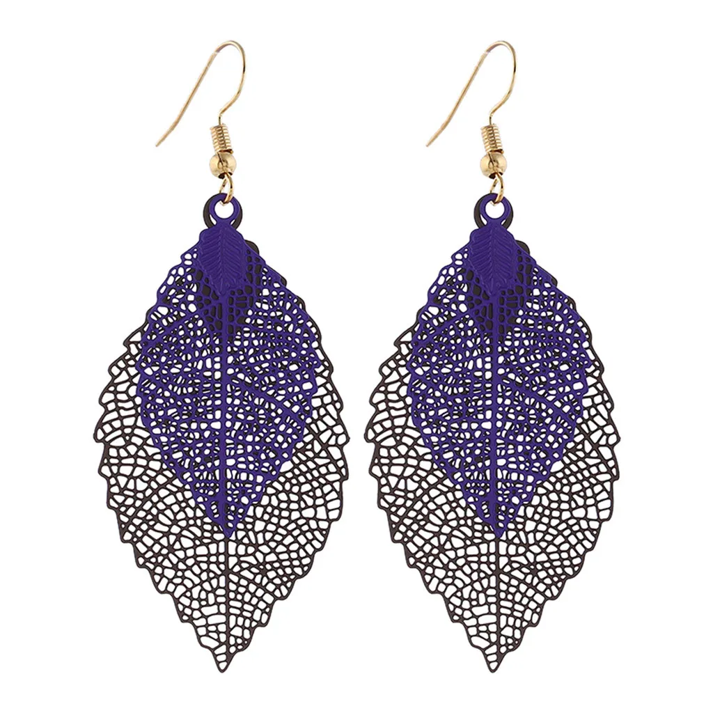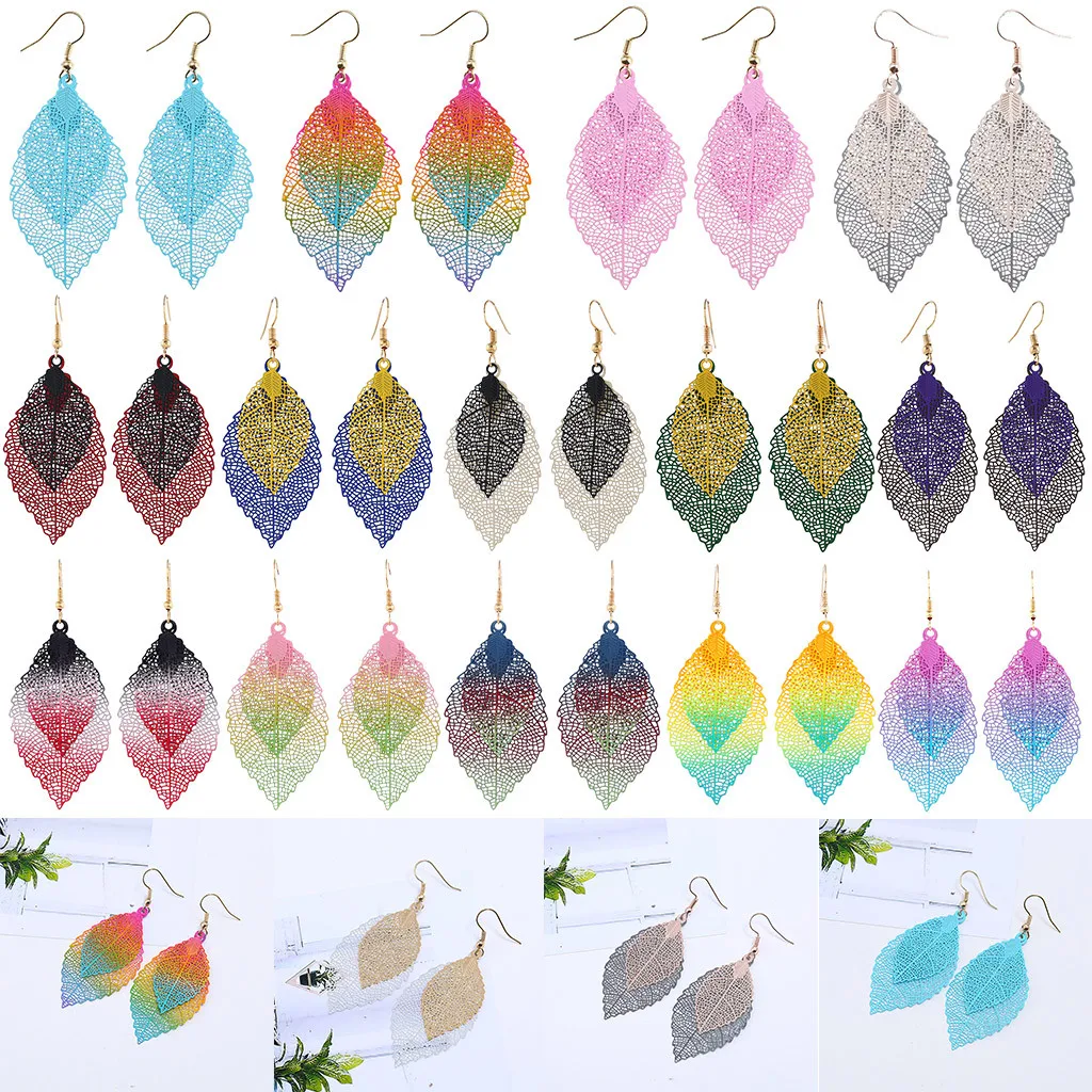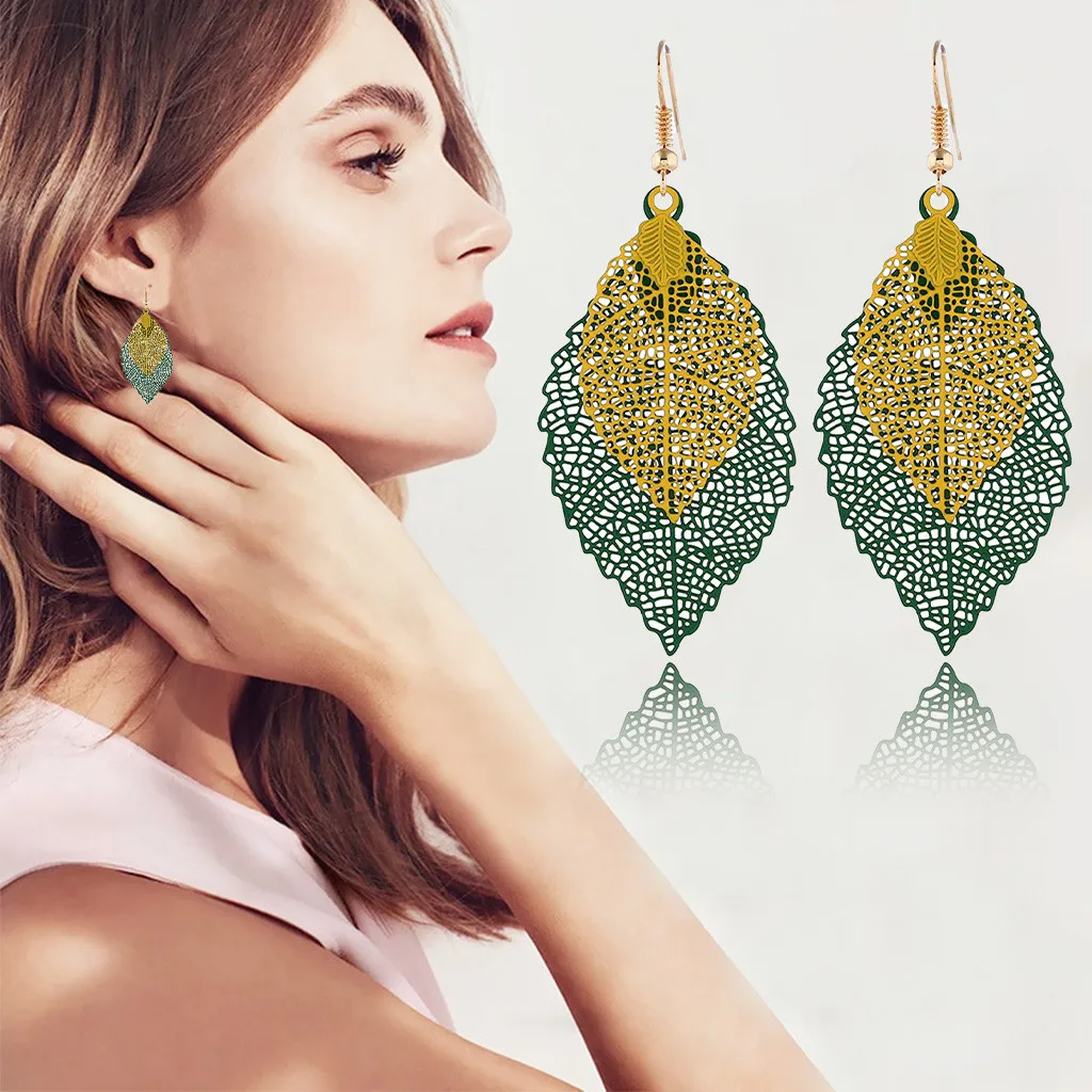 Богемные полые листья двухслойные Разноцветные серьги женские аксессуары