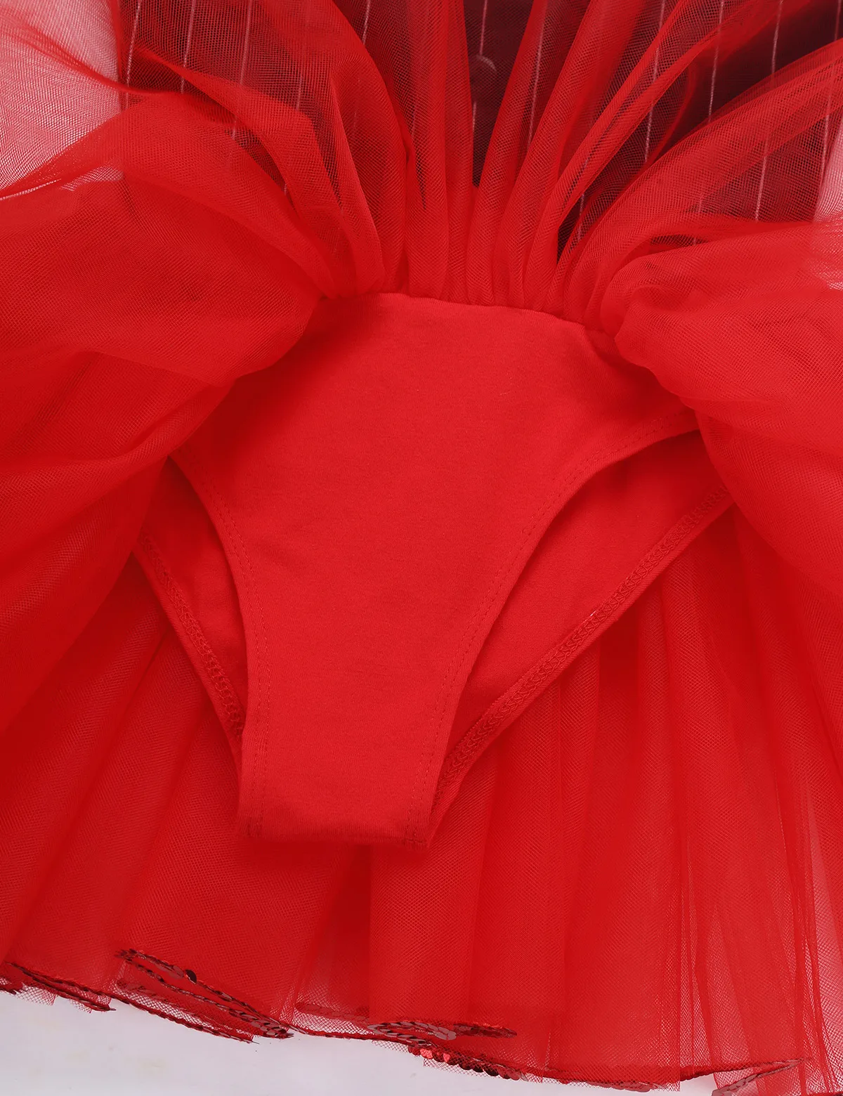 В комплект входит: 1 балетное танцевальное платье, 1 галстук с пайетками