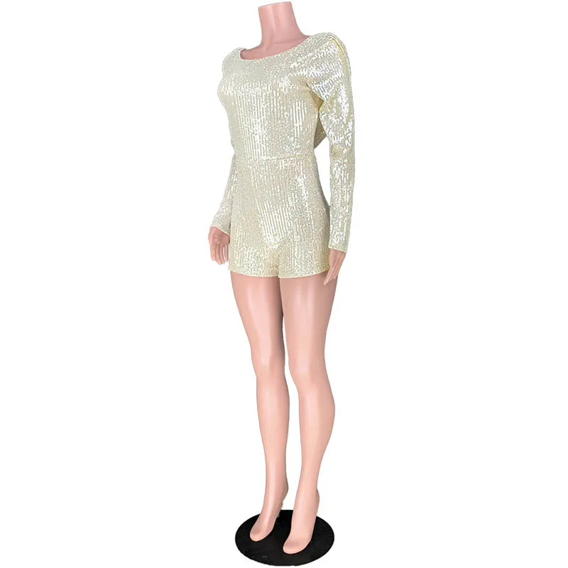 Женский Повседневный комбинезон с блестками и открытой спинкой