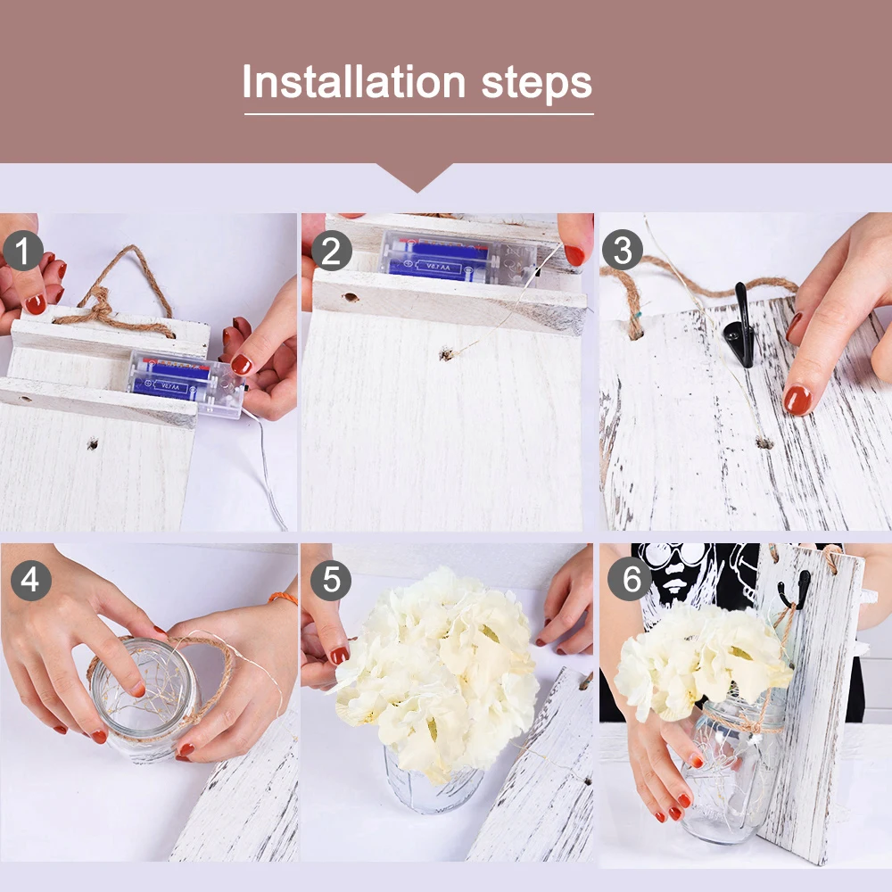 Посылка: 2 * банка Mason, 2 * цветы (54 9 # оранжег), 2 * гирлянда (2 м 20 лампа теплый белый), 2 * доска, батарея в комплект не входит