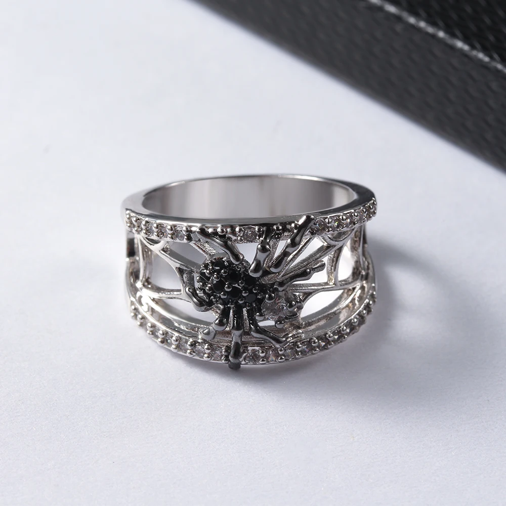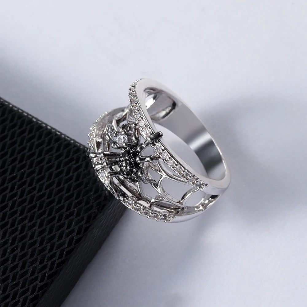 Женское кольцо, креативный стереоскопический черный паук, циркон, Женское кольцо, модный тренд, ювелирные аксессуары, подарок девушке