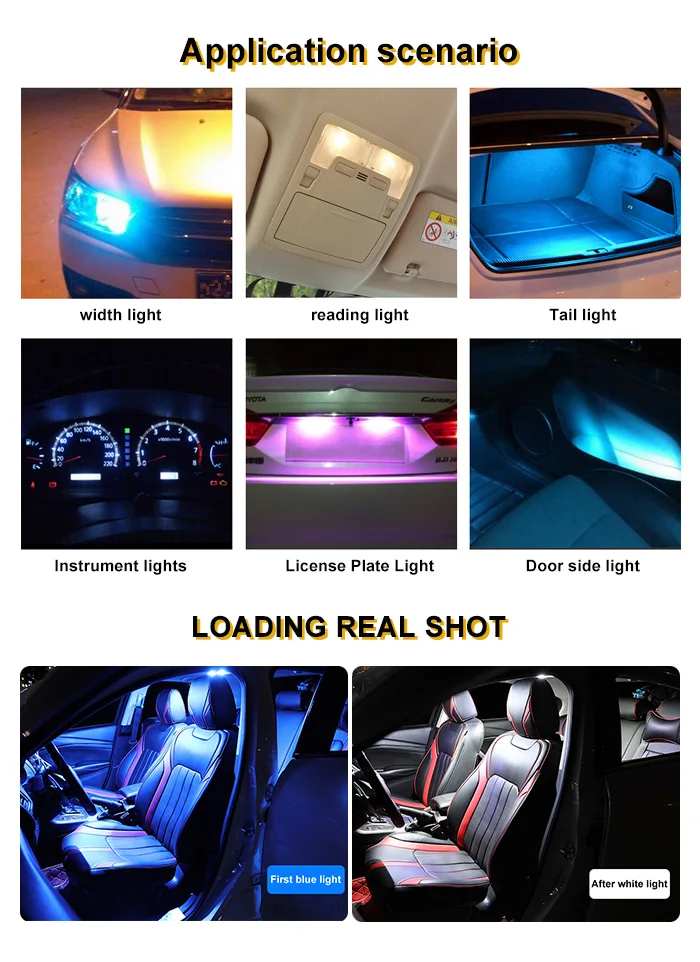 T10 W5W светодиодный светильник для интерьера Тип s: светильник для чтения, светильник на крыше, крытый светильник, светильник для багажника T10 w5w светодиодный светильник для чтения интерьера Модель: для Mercedes vw toyota nissan Использование СВЕТОДИОДНЫХ ламп doom: Сделайте ваш автомобиль более элегантным, теплым и романтичным Светодиодный светильник для чтения T10 W5W Цвет: синий-белый, желтый-белый, светло-голубой-белый Для светодиодного внутреннего светильник Добро пожаловать doom светильник Гарантия: половина года Светодиодный внутренний светильник качество чипа: 2835 8smd Применение:Дверной светильник s, над головой светильник s, бардачок светильник, светильник чтения s, подсветка багажника светильник s, лицензия/номерной знак светильник s. И т. Д. Светильник Цвет: постепенно белый светильник от blue светильник Особенности: 1. Ударопрочность и вибрация 2. Срок службы более 3000 часов в 100 раз дольше стандартных ламп 3. Низкое тепловыделение, низкое энергопотребление 4. Простота установки, прямая замена для ваших ламп на складе 5.100% безопасно для использования на транспортных средствах 【 1 комплект 】:1 шт. 2835 8SMD светодиодный лампы1 шт. T10 адаптер1 шт. адаптер Festoon Dome