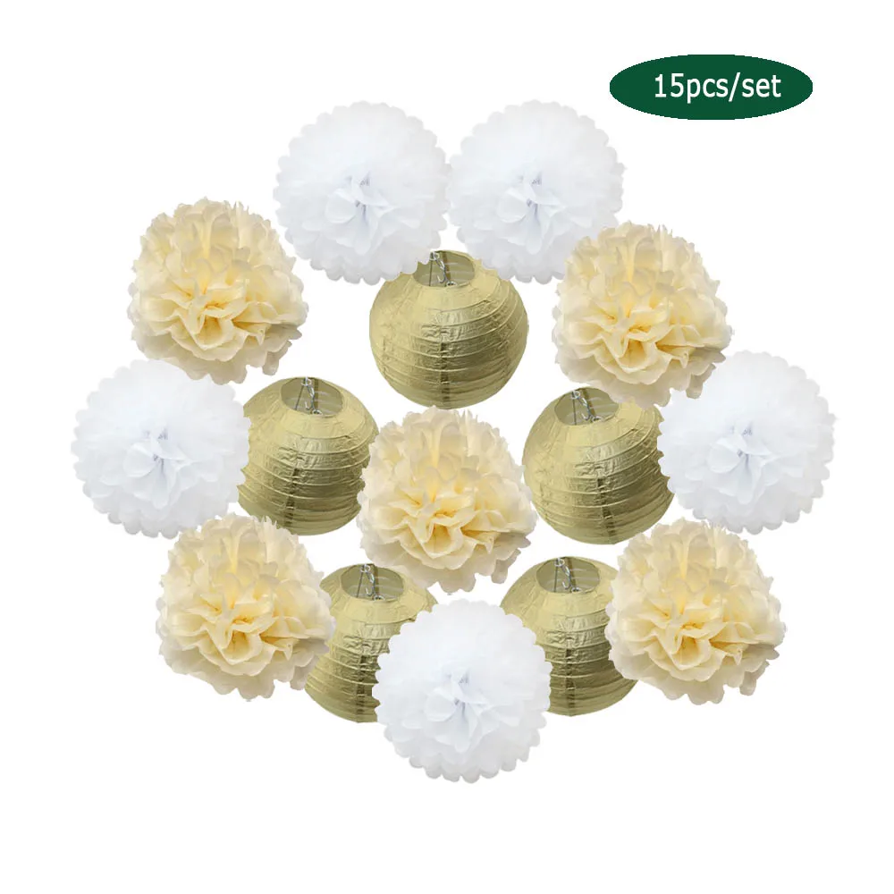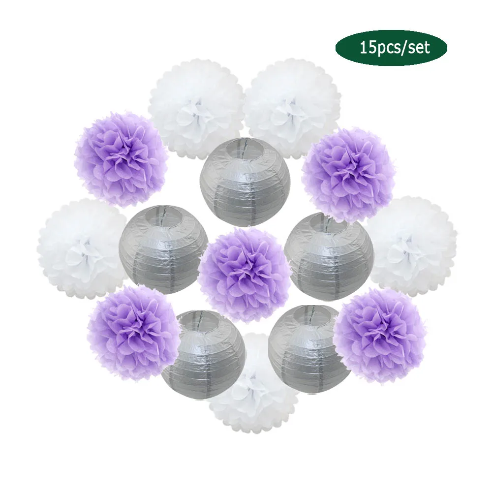 1 комплект = 5 бумажных фонарей + 10 бумажных помпонов.