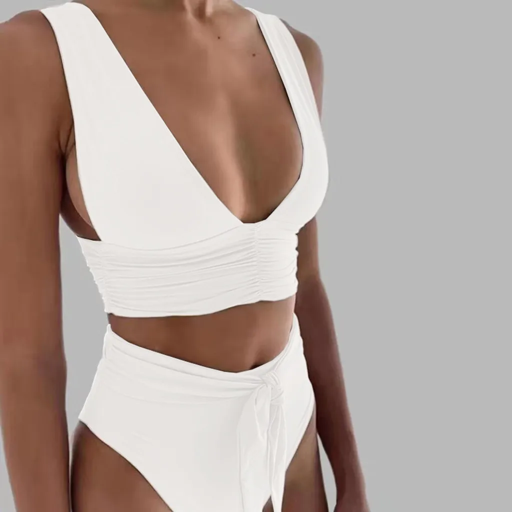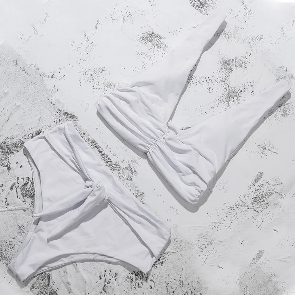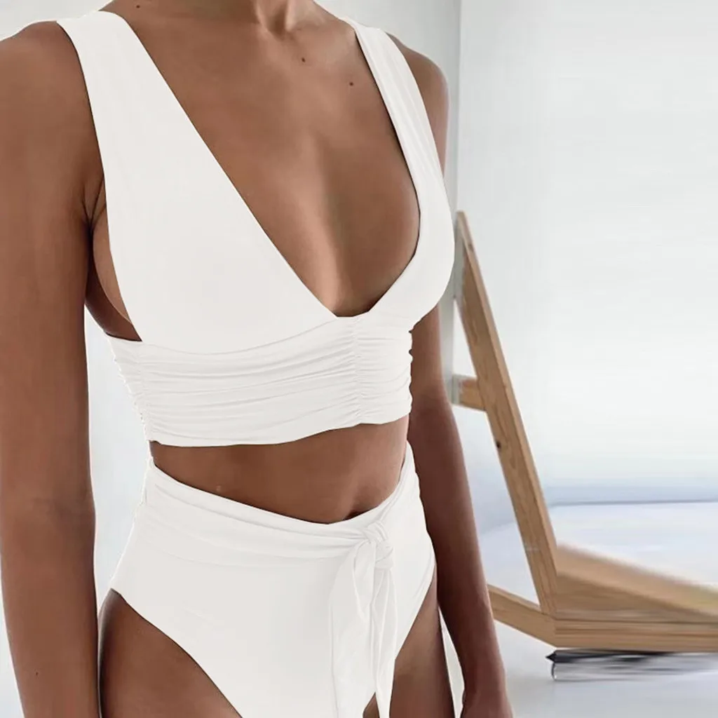 Женский модный однотонный купальник с высокой талией и бантиком, комплект бикини, пляжный костюм