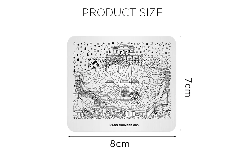 Features:1.100% Brand New and High Quality2.Made of high quality stainless steel material.3.Stamping plates designed by our designer ensures your unique experience of nail art.4.Pretty well etched plates,give you better stamping effect than normal stamping plates.5.Stamper can pick image very well and easy for application.6.Nail Art Stamp Template Image Plate with beautiful design.make your nail more attractive.Package Contents :1pc nail stamping platesInstructions:The plate is shielded by a thin transparent protective film, please remove the film before use, so that the nail polish can be transferred by the stamper.How to use :1. Apply base coat or regular polish on the nail.2. Apply the nail polish to desired image within a plate. (Recommended: Use the Solid Color Nail Polish, so that the texture will be thicker than other nail polish)3. Make a scraper leaned over 45 degrees and scrape excessive polish off quickly and strongly from inside to outside.4. Immediately press the stamper with a gentle rolling motion to pick up the design. The image is transferred on the stamp.5. Stamp the image on your nail with a gentle rolling motion. The image is transferred on your nail.6. Repeat the above steps for all of your nails.7. After stamping nail art, apply top coat for lasting wear.