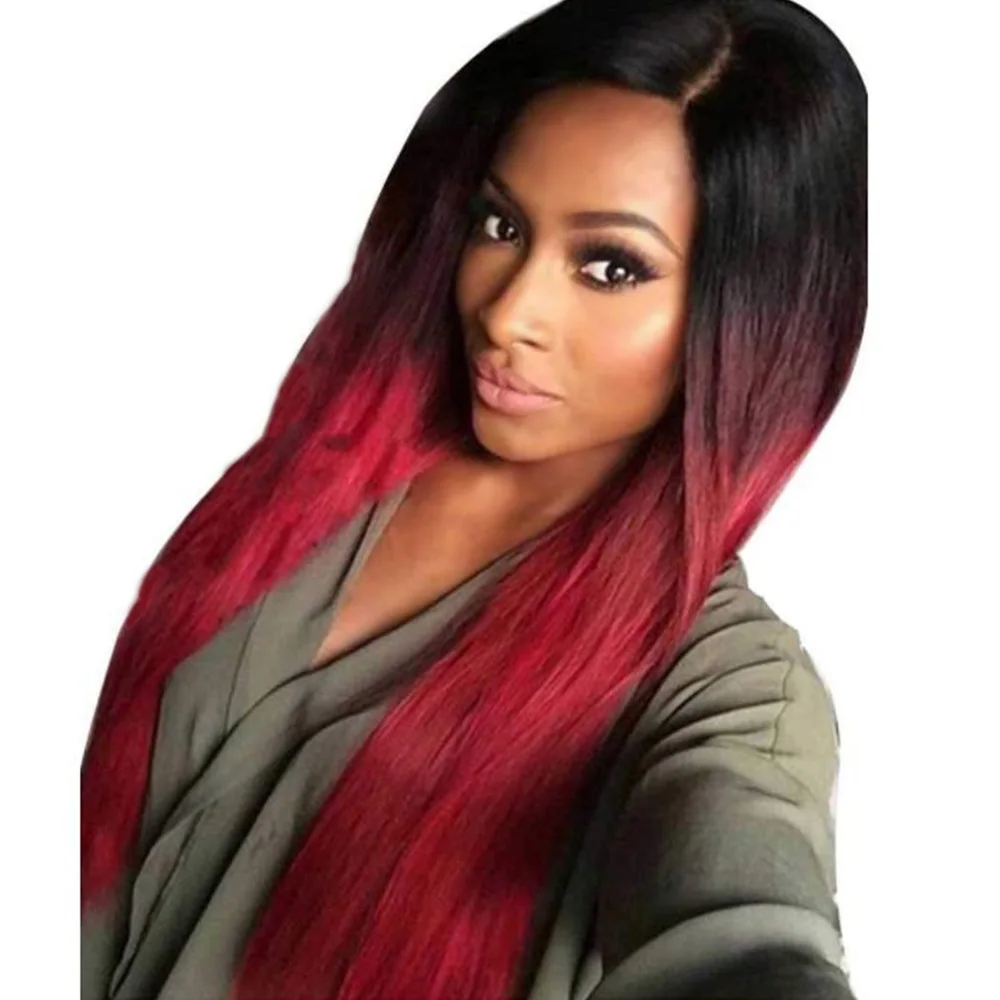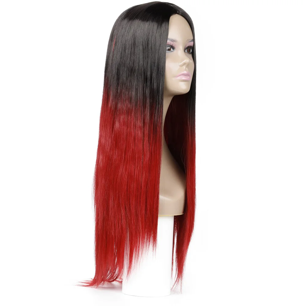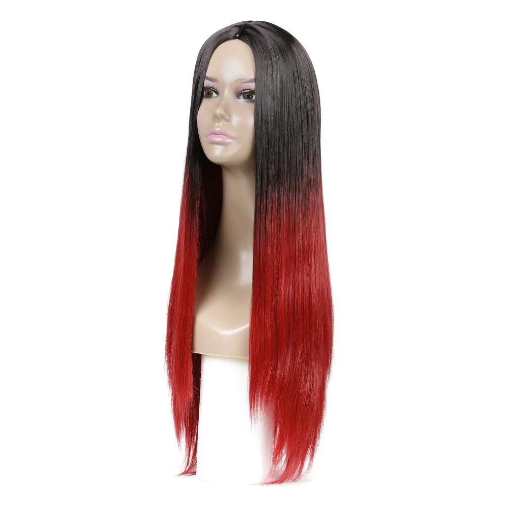 Омбре прямые парики для черных женщин человеческие волосы на ощупь парики термостойкие синтетические парики для женщин Натуральные Искусственные волосы