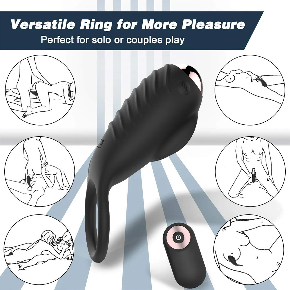 10 Speeds Penis Vibrator Rings Male Longer Lasting Vibrating Cock with Ring Massager Brush Silicone Adult Sex Toys USB Charged