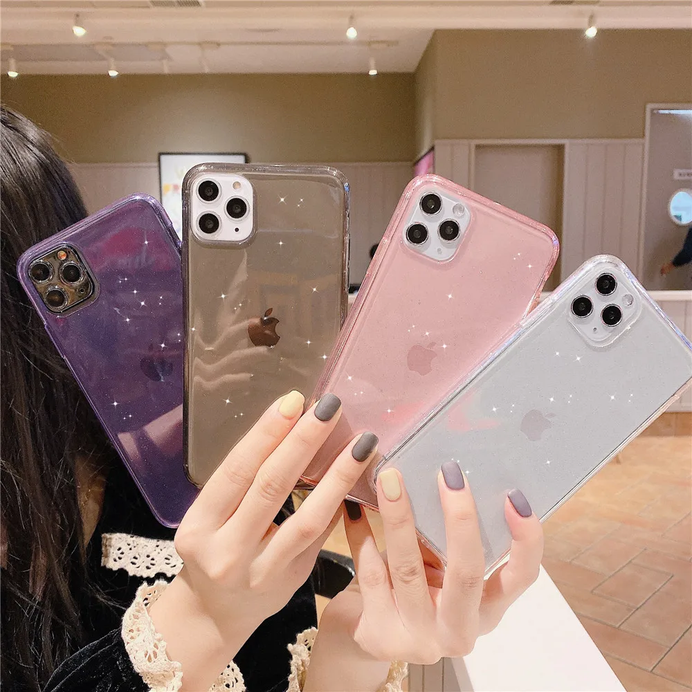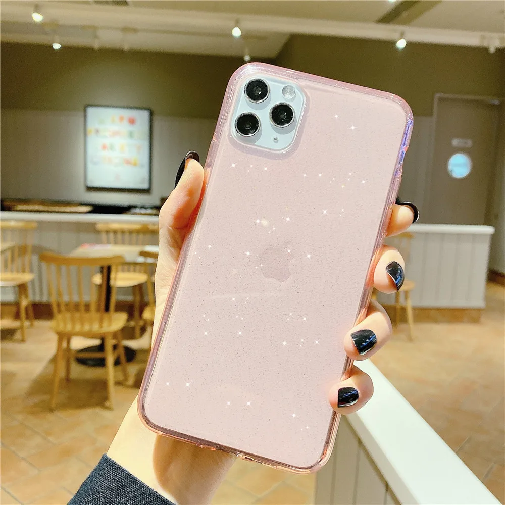 Блестящий яркий чехол для телефона iphone 6 6S 7 8 Plus X XR XS 11 Pro MAX, Чистый Блестящий мягкий ударопрочный чехол из ТПУ