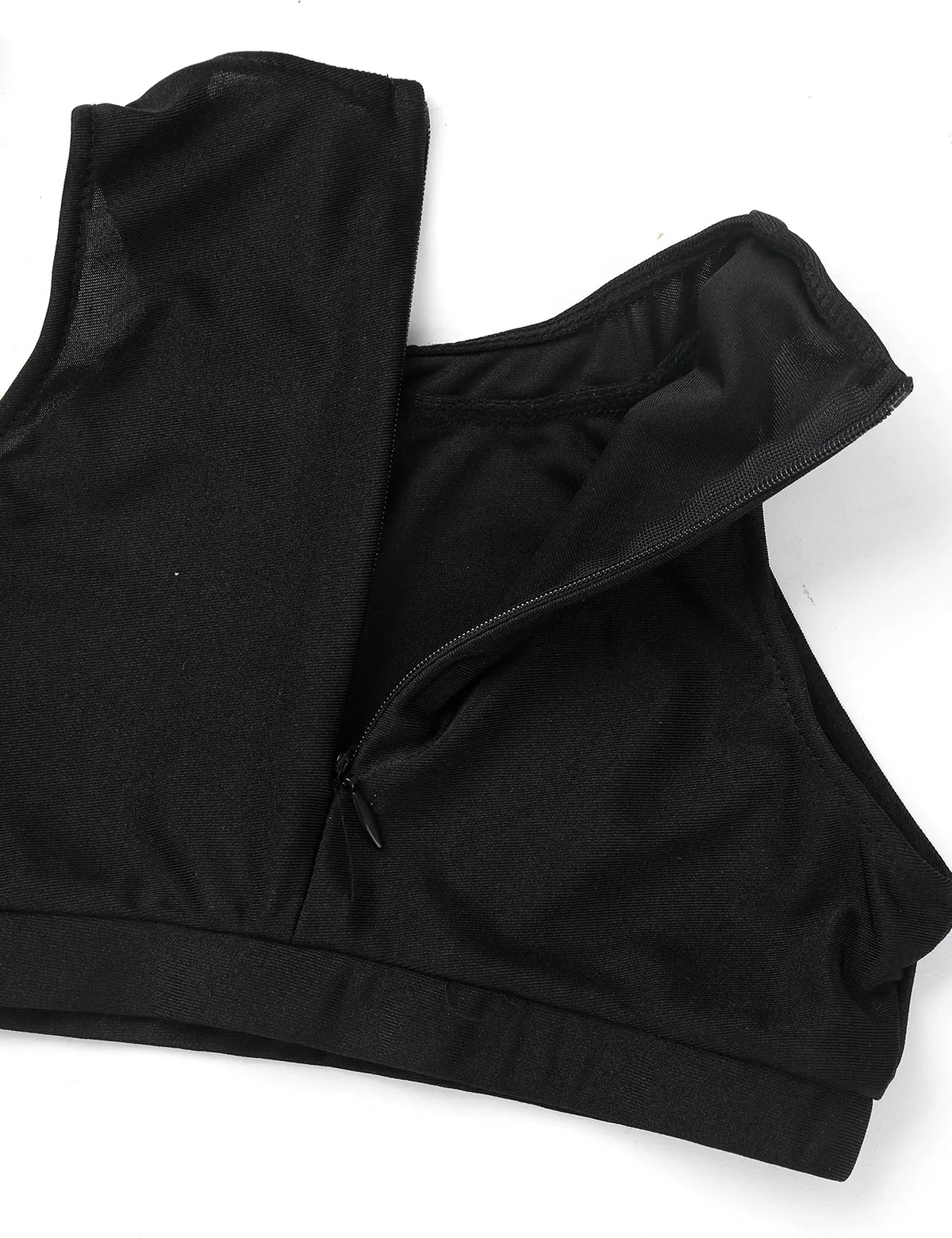 Укороченный топ без рукавов с круглым вырезом. Скрытая молния сзади для удобства одевания. Эластичная ткань, мягкая и удобная в носке.