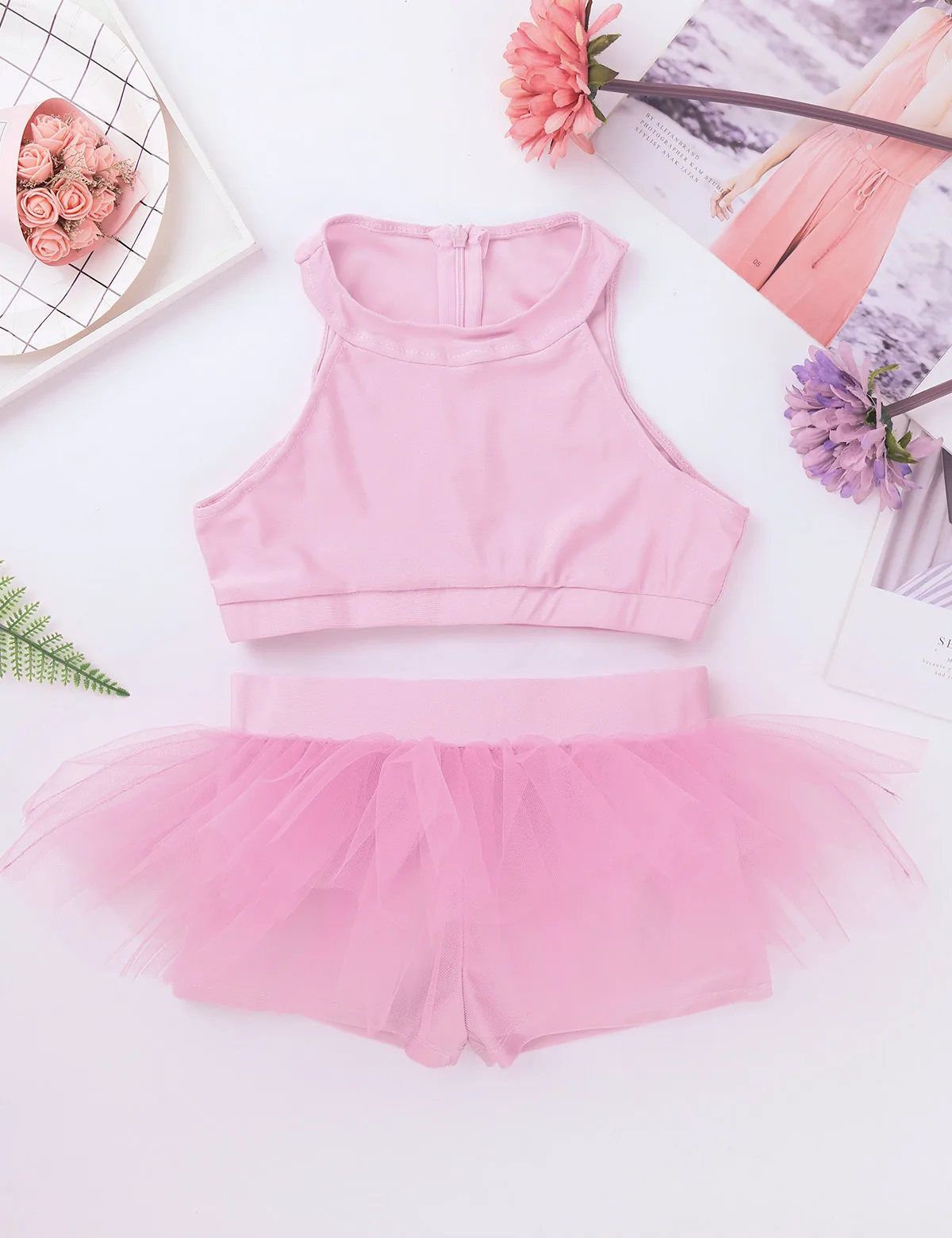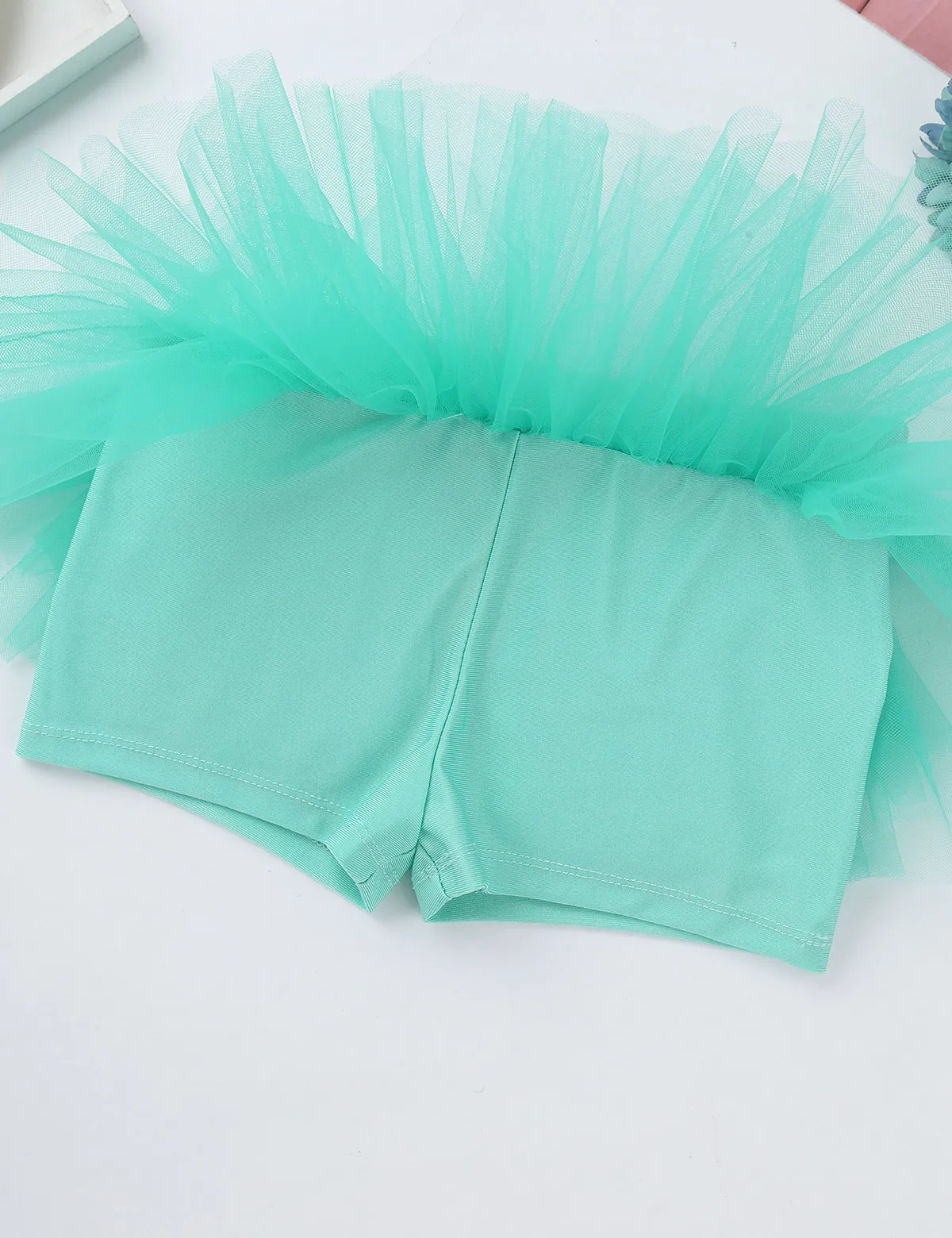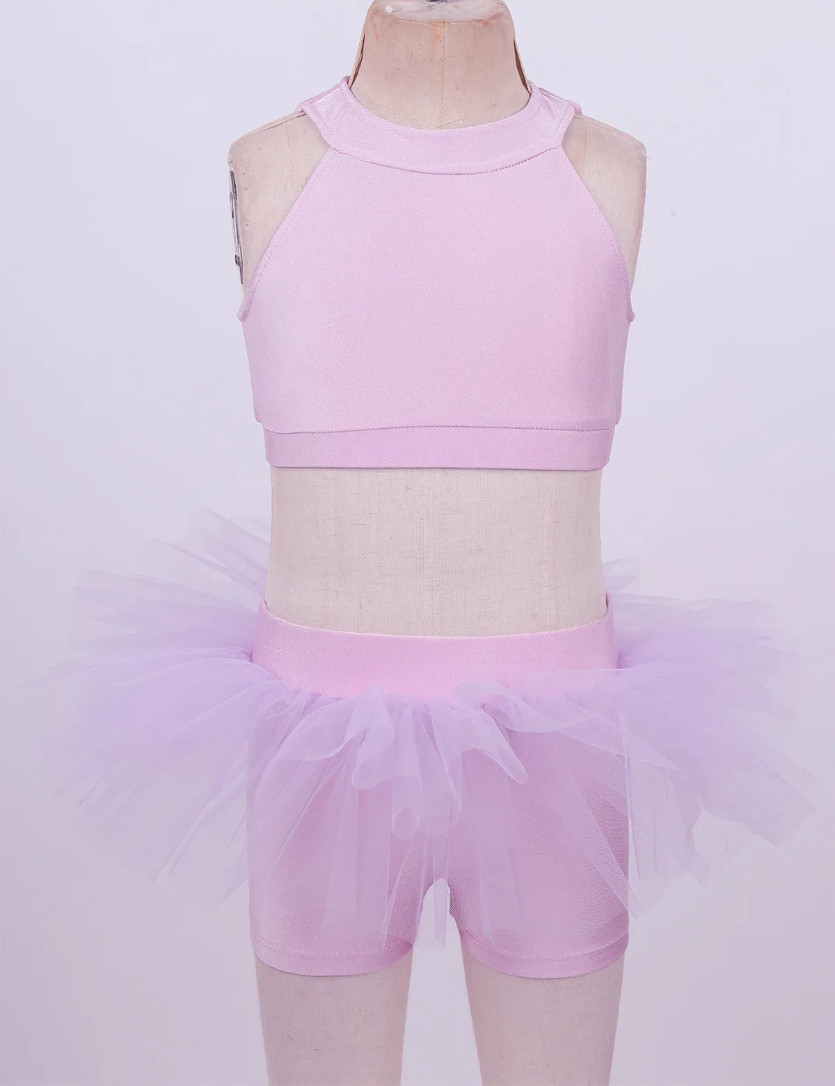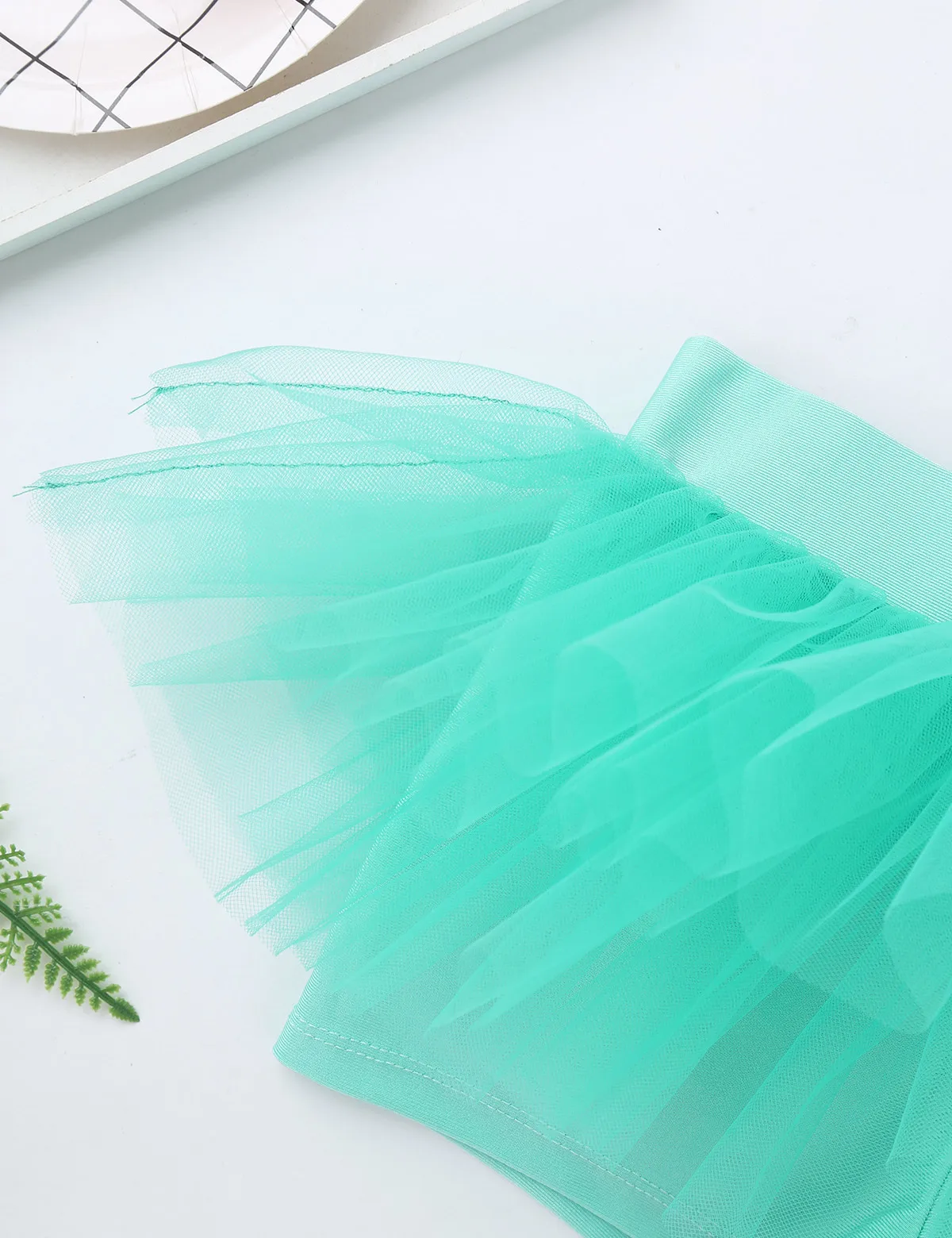 Брюки с широким эластичным поясом; многослойные сетчатые оборки на талии. Красивая Одежда для танцев выделит вашу девочку.