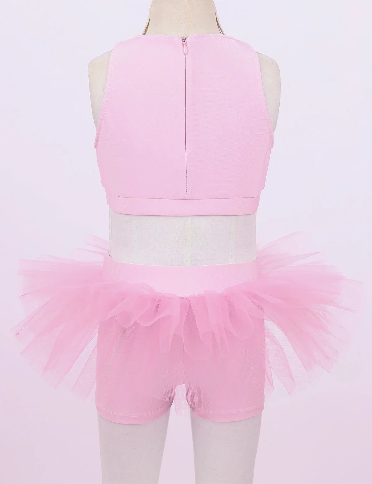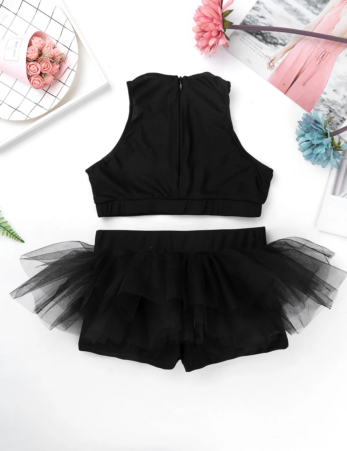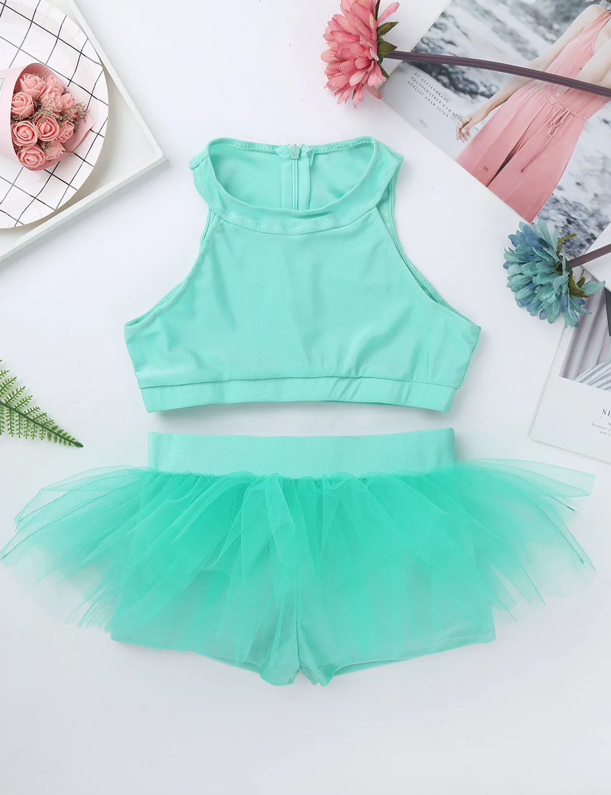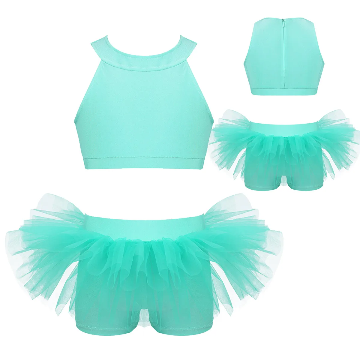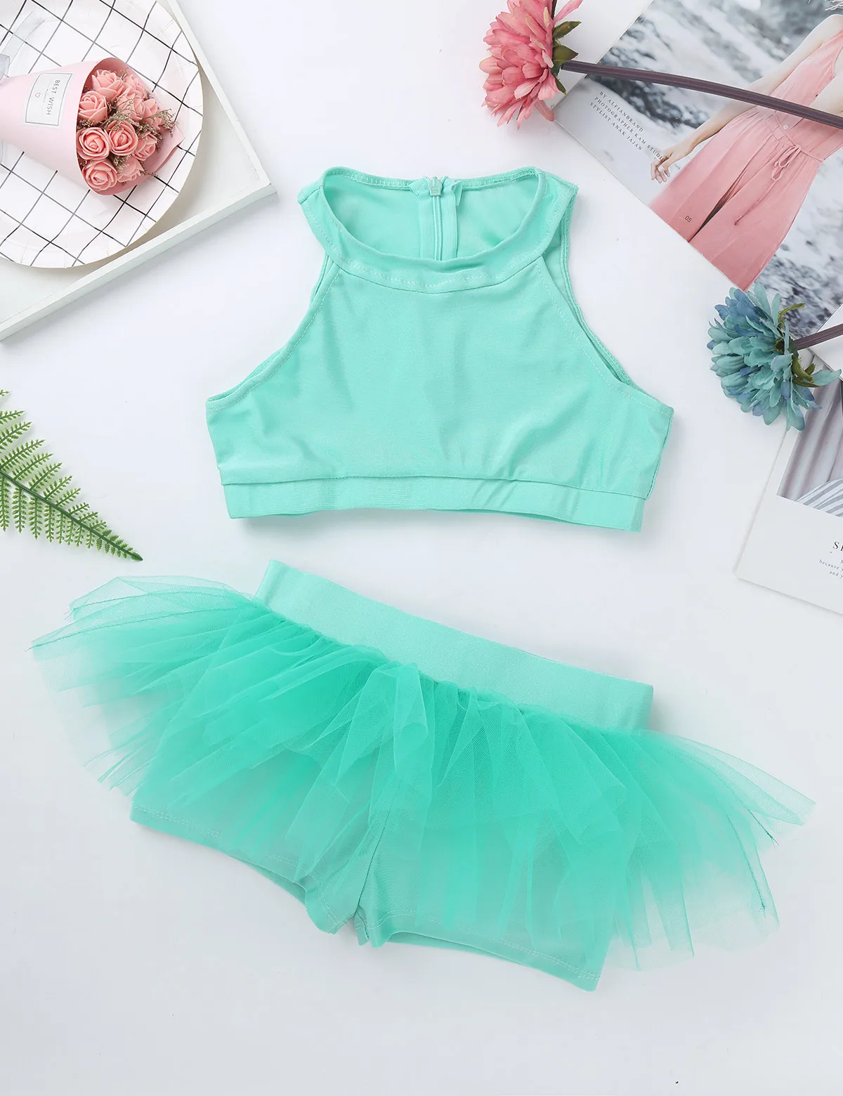 Брюки с широким эластичным поясом; многослойные сетчатые оборки на талии. Красивая Одежда для танцев выделит вашу девочку.
