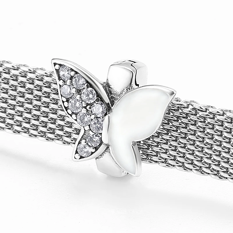 Браслет с бусинами Женский серебристый Подарочный браслет большим отверстием в