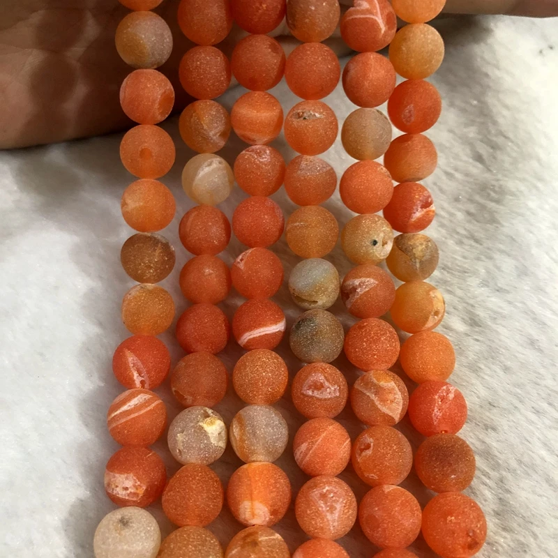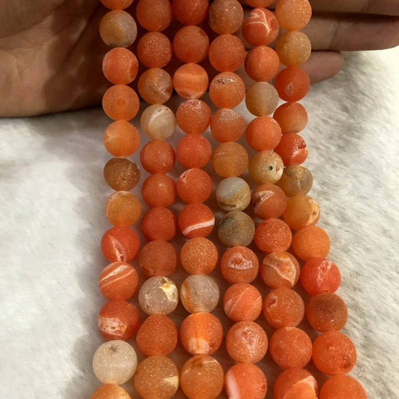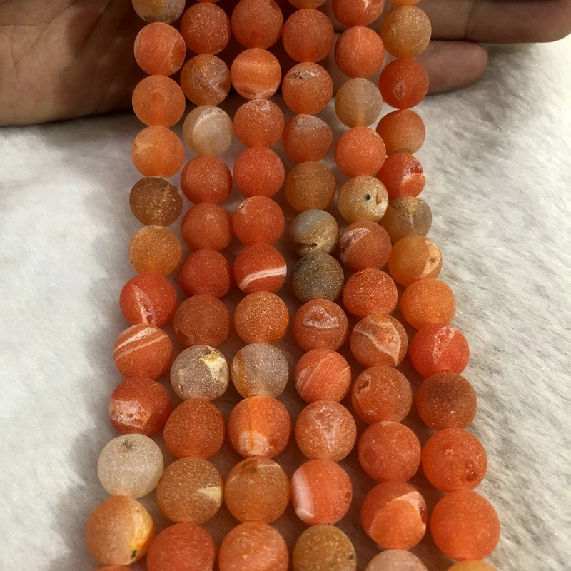 Natural Orange Geode Agate Beads 10mm Round Gem stone Loose Beads For Jewelry Making,1of 15.5" string