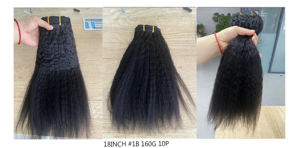 Материал: 100% бразильские человеческие волосы Тип изделия: наращивание человеческих волос на заколках Текстура волос: Кудрявые прямые волосы Цвет волос: натуральный черный может быть окрашен Характер: мягкий и шелковистый, соответствует длине Предложение: 120 г/пакет, 2-3 количества могут сделать полную головку. Подходит для молодых девушек, здоровых волос, не запутывается, не линяет.