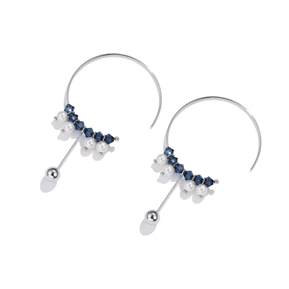 Серьги-кольца женские круглые из серебра 925 пробы с маленькими синими