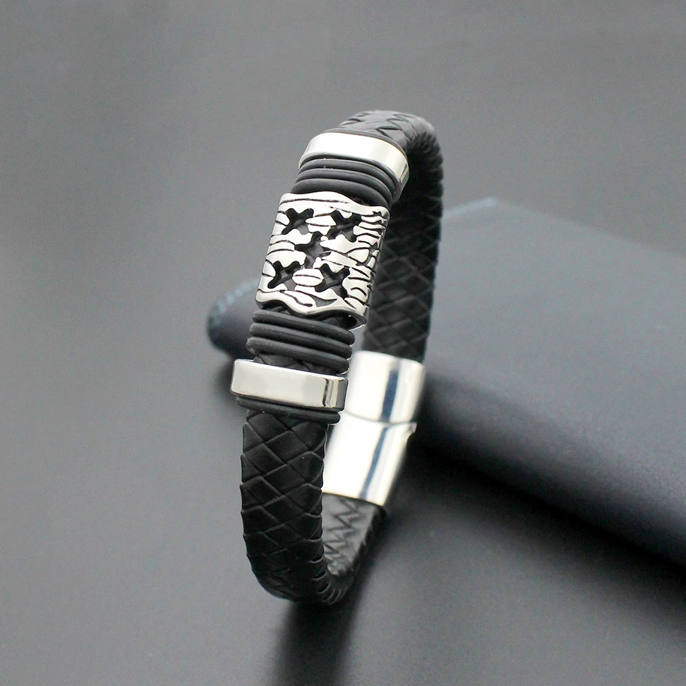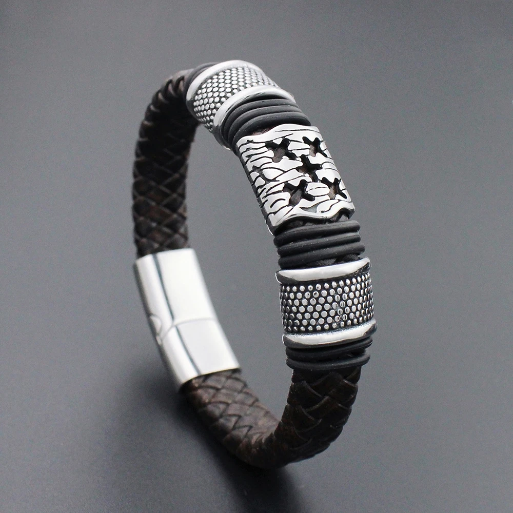 Мужские ювелирные изделия 12 мм Широкий Плетеный Ретро Браслет из натуральной кожи из нержавеющей стали X браслеты из бисера с магнитной застежкой