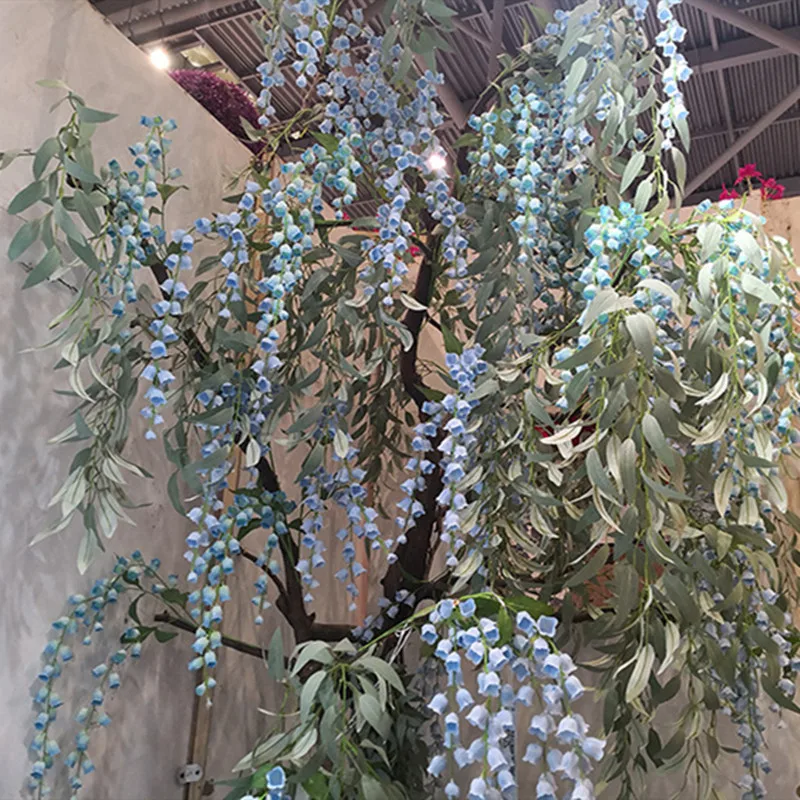 New artificial flower bell lily flower silk Campanula with leaf wedding soft decoration home DIY wedding decor lily Fake flowers
