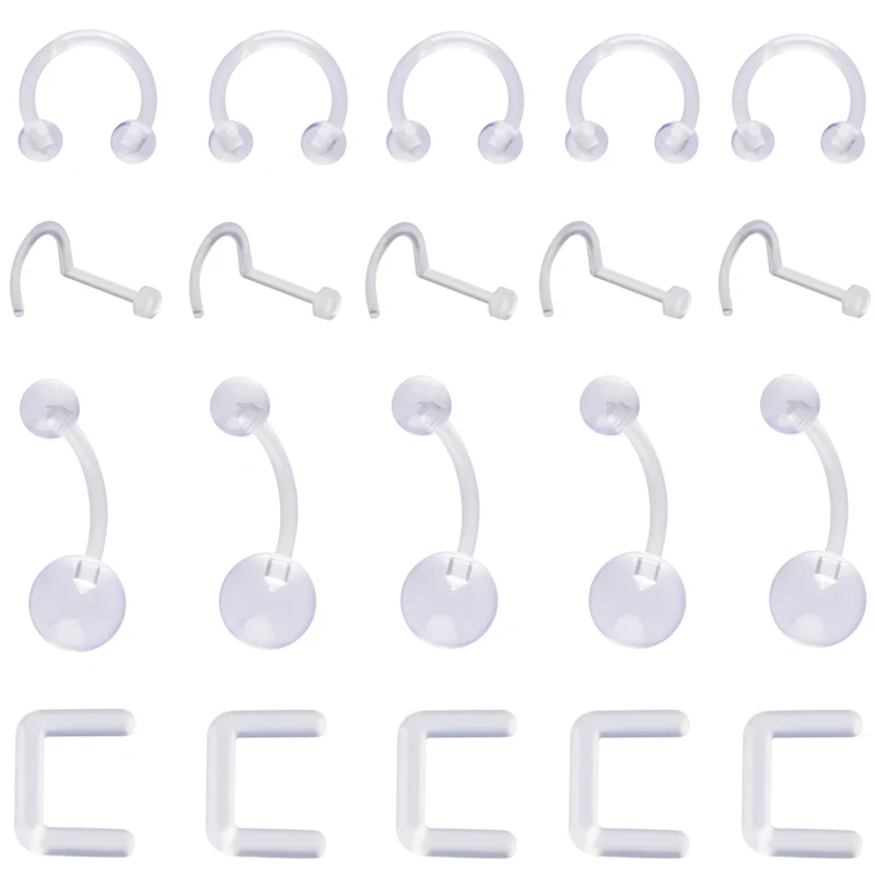 Nose navel piercing 20pcs/set Acrylic Ear Piercing Industrial piercing transparent Simple For Men Women Accessories Body jewelry