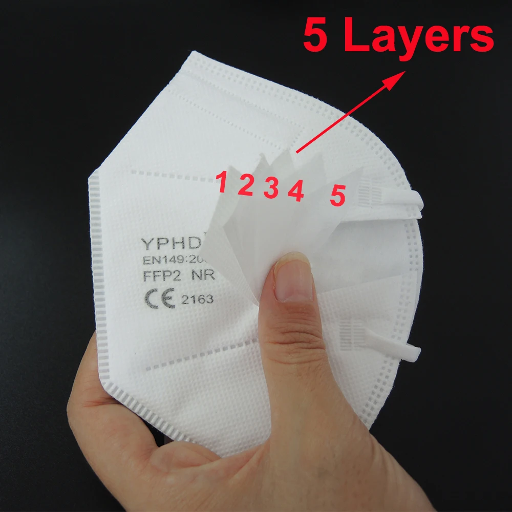 Маска состоит из 5 слоев, 2 слоя-из мелтдувной ткани, обеспечивают наилучшую защиту. (сырье из мелтдувной ткани выше 95% фильтра)