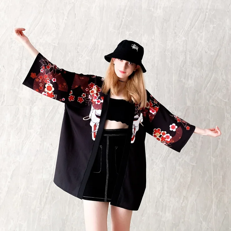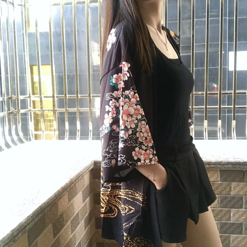 Японское сексуальное кимоно для женщин черное кружевное платье с цветочным