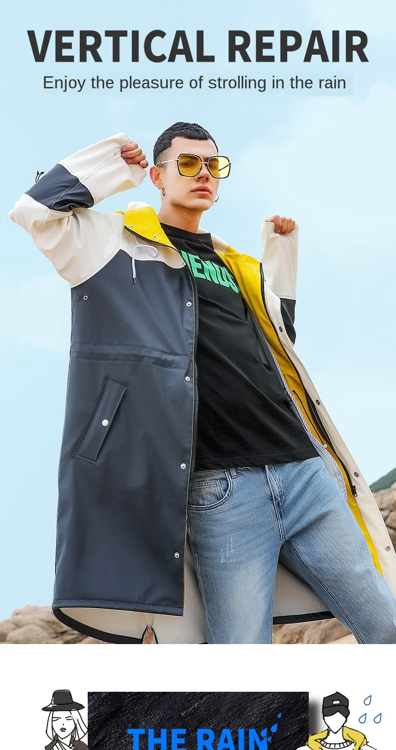 Удлиненный модный легкий большой тонкий дождевик с полной проклейкой | Дом и сад