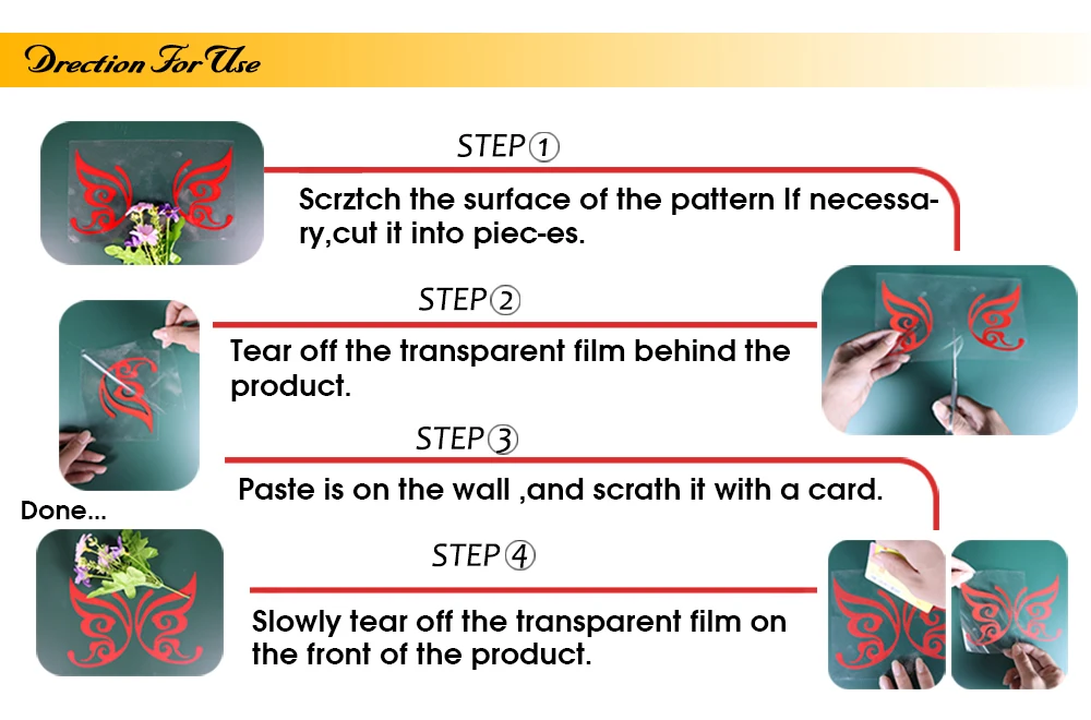 2.Наши наклейки не напечатаны, поэтому они не содержат фона, на стене или поверхности, на которую вы наносите наклейку, будет использоваться фон.