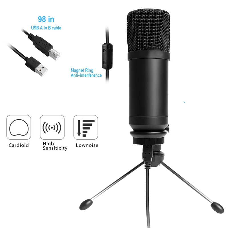 PROFESSIONAL SOUND CHIPSET 192kHz/24bit Plug and play:USB 2.0 data port easy to connect with computer STURDY BOOM ARM SET:with shock mount, boom arm, pop filter, foam windscreen 16mm ELECTRET CONDENSER TRANSDUCER & MAGNET RING Computer: Windows and Mac OS. Mobile phone: Android and IOS,need a OTG adapter (not included)