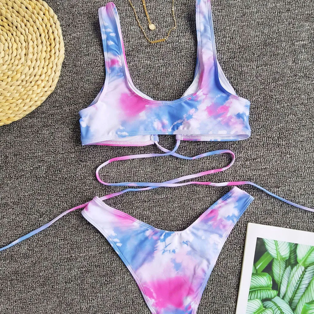 Женский однотонный Модный комплект бикини, сексуальный купальник с оборками, пляжная одежда