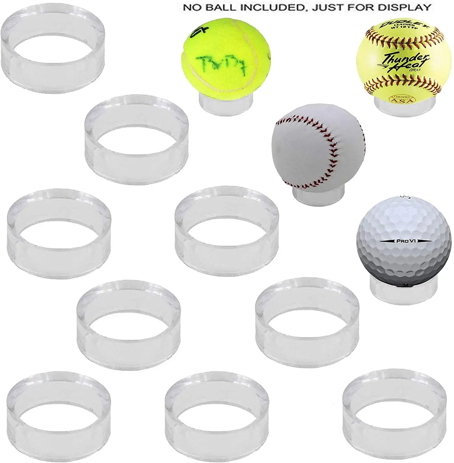 1-1/2 "акриловый прозрачный Стенд подставки кольца для мячей для гольфа Бейсбол Софтбол теннисные Сферы мяч круглый объект Футбол Софтбол яйцо остается на стойке. Без мяча-(упаковка из 10)