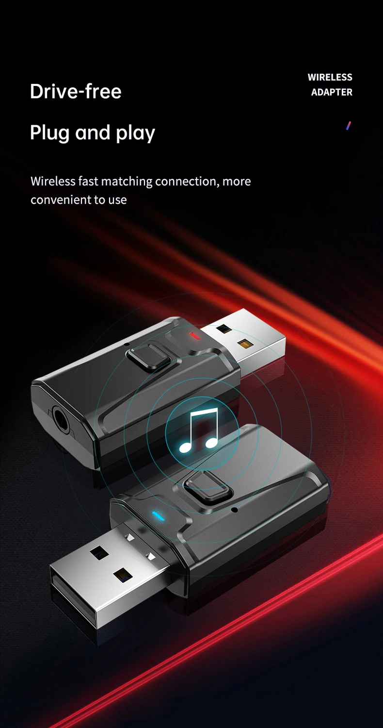 2. Режим передатчика:Беспроводная передача аудио с телевизора, не Bluetooth, домашней стереосистемы или CD-плеера на наушники или колонки Bluetooth 3. Режим приемника:Беспроводная передача аудио с телефона, планшета или компьютера с поддержкой Bluetooth на проводные стерео, колонки или наушники. 4. Нет встроенного аккумулятора, и он питается от usb интерфейса постоянного тока 5 в: A. Вставьте Питание usb, красный светильник включен в режим передачи, красный светильник мигает при сопряжении, и красный светильник всегда включается после завершения сопряжения. B. Вставьте usb для включения питания, режим приема-синий светильник, синий светильник мигает при сопряжении, синий светильник всегда включается после успешного сопряжения. 5. Широкая совместимость:С помощью прилагаемого 3,5 мм кабель, этот приемник передатчик адаптер может широко использоваться на вашем компьютере, ноутбук, домашней стереосистеме, бумажное полотенце, кабель для наушников, смартфон, Mp3 проигрыватель компакт-дисков и т. д. Посылка Содержание 1x Bluetooth 5,0 передатчик/приемник адаптер 1x3,5 мм Aux кабель 1x Руководство пользователя