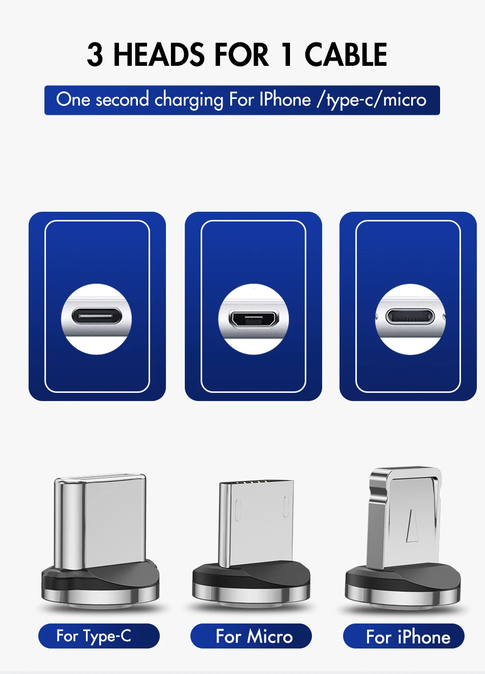 Зарядный кабель USLION Micro USB, USB Type C, 3A, магнитный, 4 цвета
