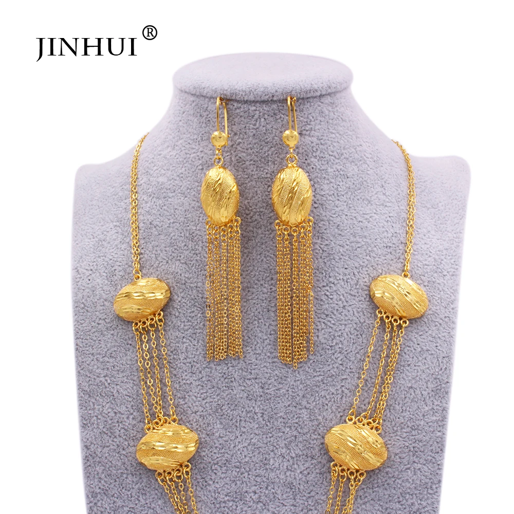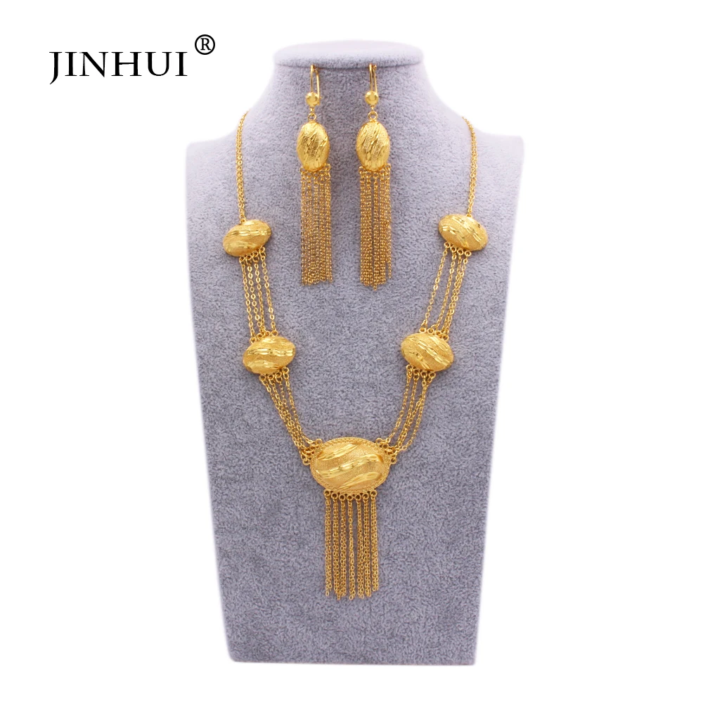 Комплект из колье и серёг цвета 24-каратного золота | Украшения аксессуары