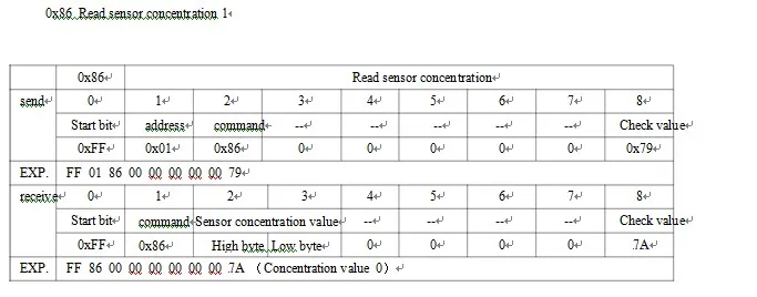 8. Данные, возвращенные последовательным портом модуля, являются значением концентрации в реальном времени в текущей среде. Если нет стандартного газа, пожалуйста, не пытайтесь откалибровать команду. Эта команда приведет к очистке данных калибровки, и данные, возвращенные из последовательного порта, будут неточными.