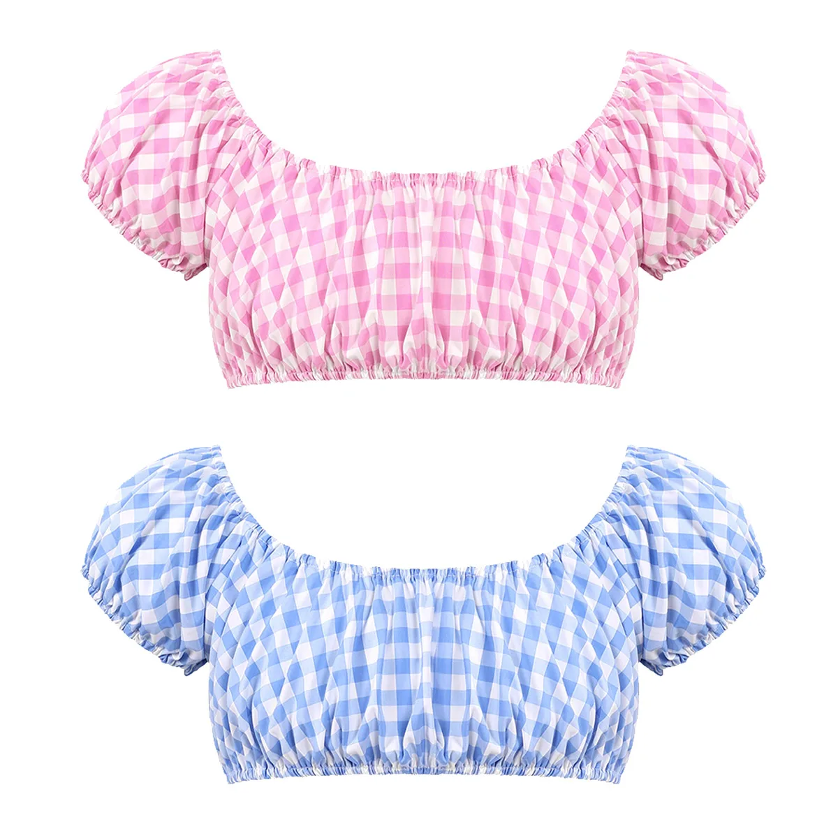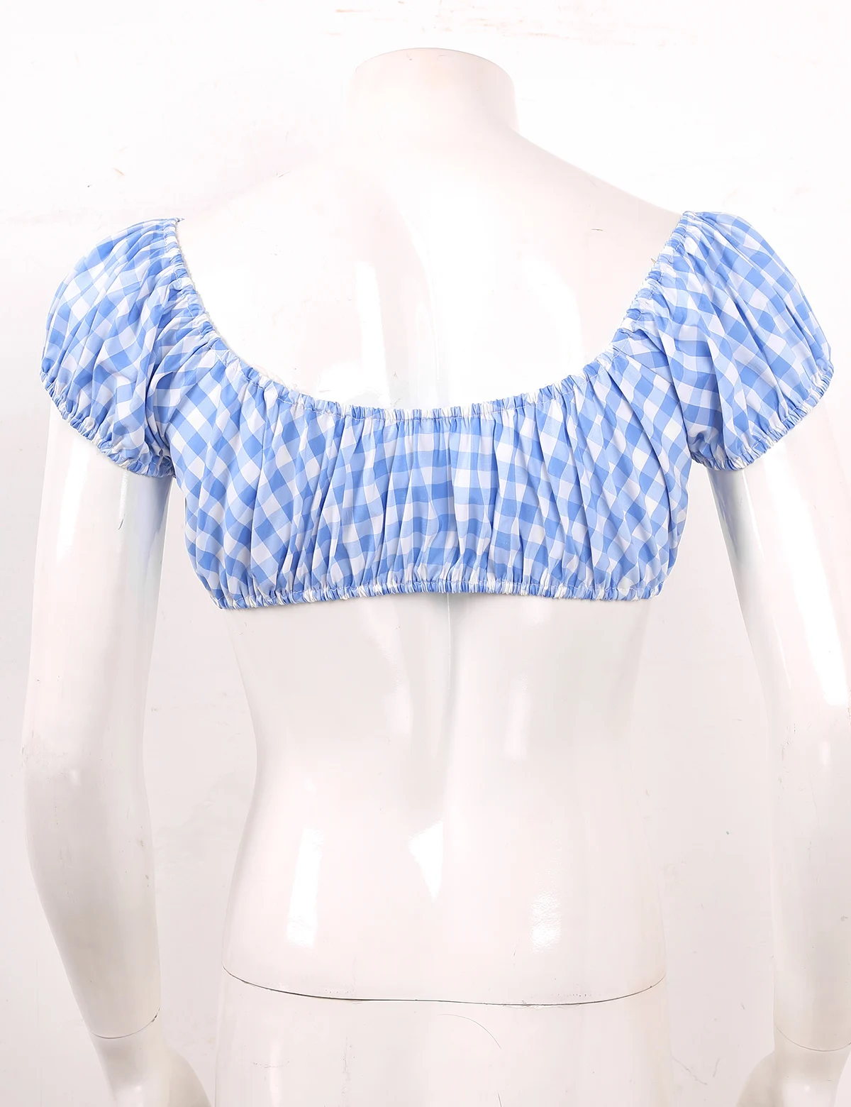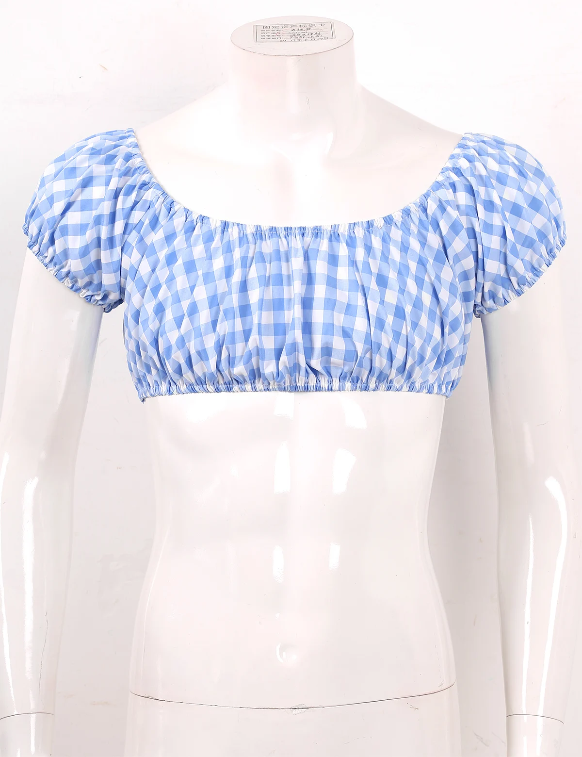 Men’s sissy gingham plaid crop tops cross dresser costume, pull on closure.