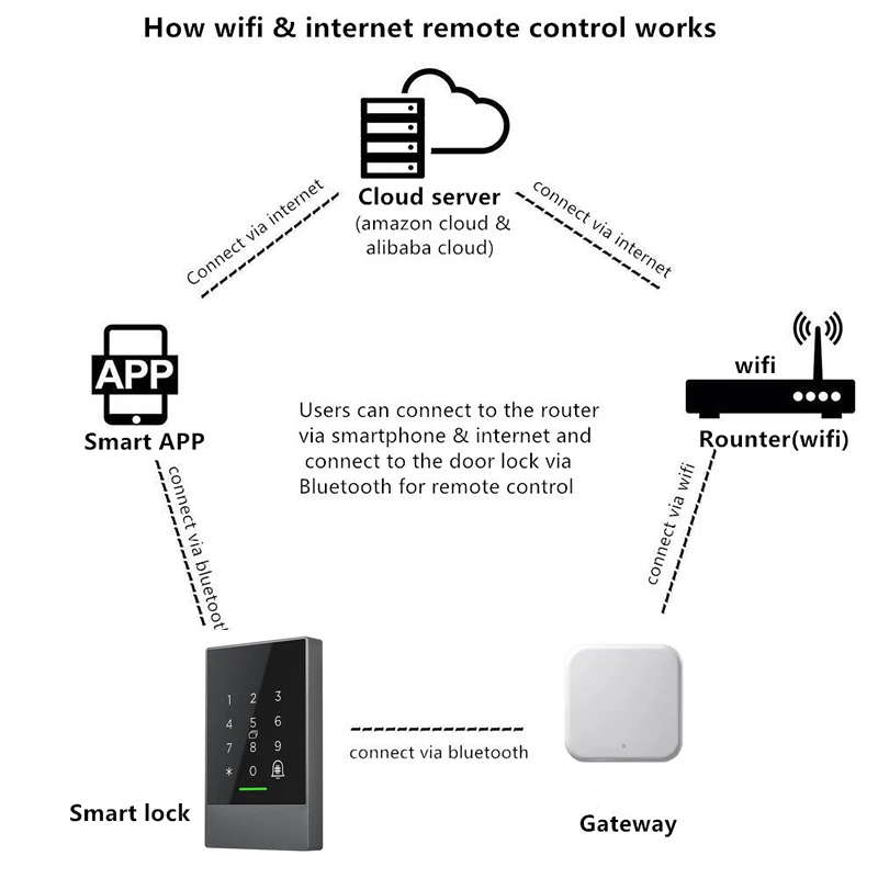 Посылка включает в себя: 1 * Клавиатура 1 * Проводное подключение 1 * Руководство пользователя. Параметры: 1. Методы разблокировки A. Bluetooth ekey B. Пароль C. Микросхемой чипом микропроцессорные карты 2. Два программного обеспечения управления блокировкой Один для персонального использования Другой для квартиры, квартиры, отеля, пользователей Airbnb 3. Версия Android, версия Apple(IOS), веб-версия трех версий программного обеспечения управления 4. Одно умное приложение может управлять всеми замками во всей области, такими как весь дом, все офисное здание или вся школа, вся квартира 5. Одно умное приложение может управлять всеми замками в различных свойствах, таких как отель, квартира или airbnb, расположенных в разных местах 6. Бесплатный SDK и API 7. Удаленное изменение пароля через Интернет 8. Когда пользователь откроет дверь, он получит сообщение в режиме реального времени 9. Для пользователей, не имеющих смартфонов, они могут разблокировать дверь с помощью пароля 10. Может устанавливать ограниченные по времени пароли и ekeys 11. Вы можете отрегулировать левое и правое Направление ручки двери самостоятельно. 12. Wifi и мобильный Интернет-пульт дистанционного управления 13. Это умное приложение может использоваться в качестве рабочего времени 14. Время работы в режиме ожидания составляет до 12 месяцев, когда батарея начнет работать, система будет иметь звук и светильник 15. Удаленно просматривайте состояние двери, открывайте или закрывайте 16. AES 128-bit шифрования не допускать никаких хакер скрытые опасности